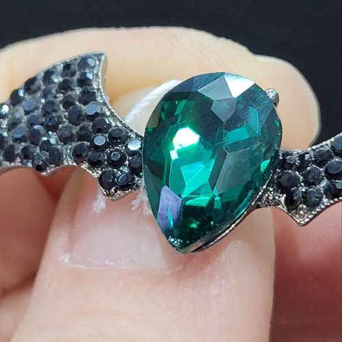 Siyah ve yeşil kristal taşlı damla yarasa broş / cadılar bayramı