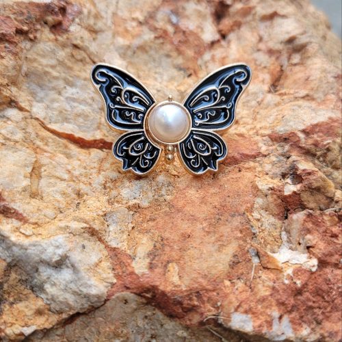 İncili damla beyaz mineli ibrik - mavi pembe çiçekli bahçıvan suluk broş