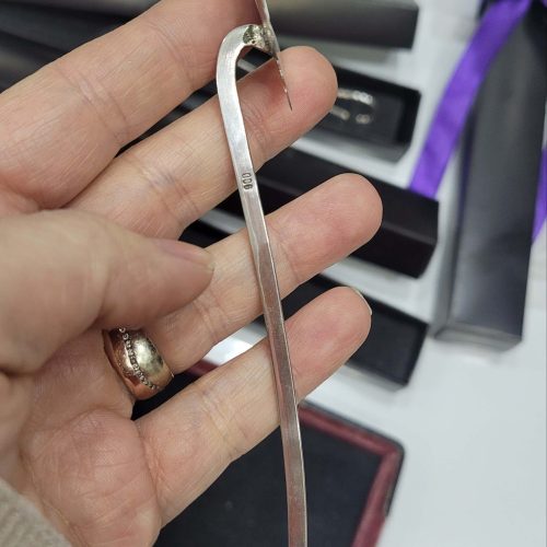 El yapımı 900 ayar gümüş fiyonk kitap ayracı