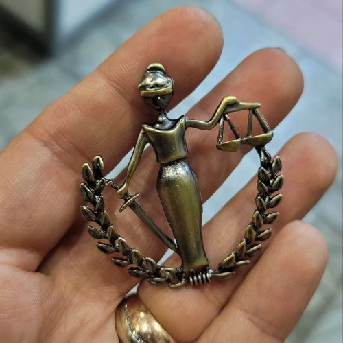 Antik koyu sarı themis heyleli adalet heykeli hukukçu broş