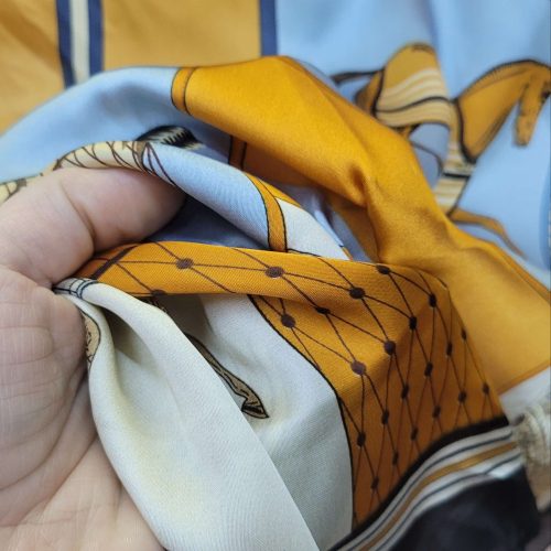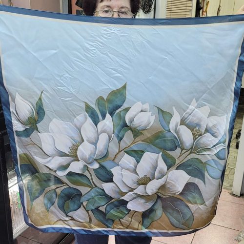 Japon sakura aşk mabedi- Yeşil sarı sakura çiçek bahçesi ipeksi saten jakarlı çift yönlü şal