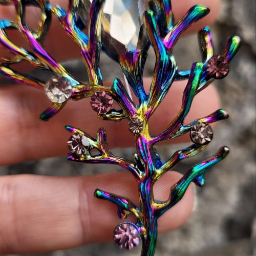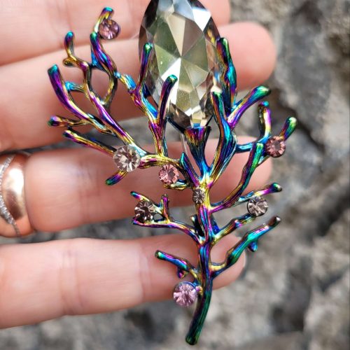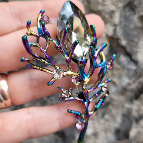 80ler vintage model – Elsa Janjan Yaprak sitrin gri sarı kristal taşlı broş ve kolye ucu (tek ürün)