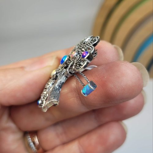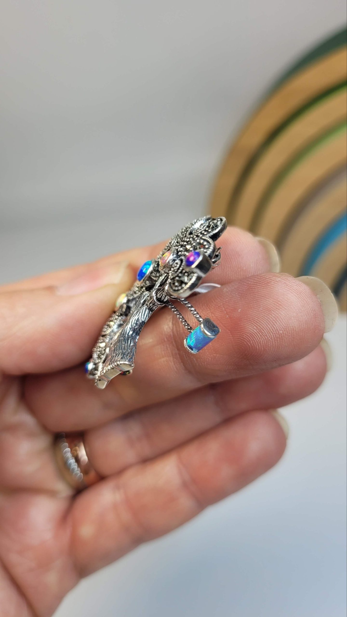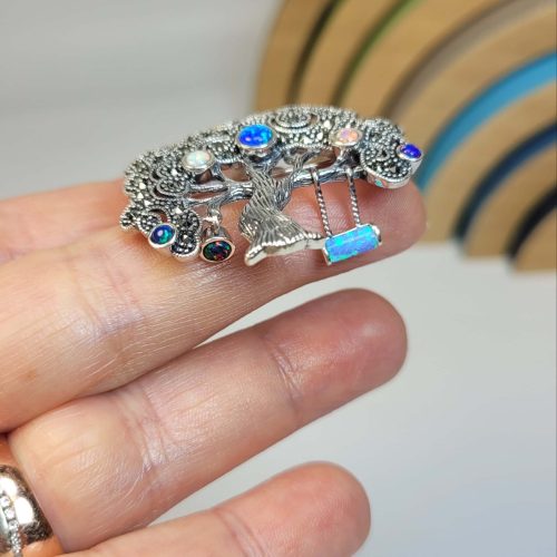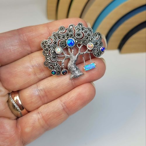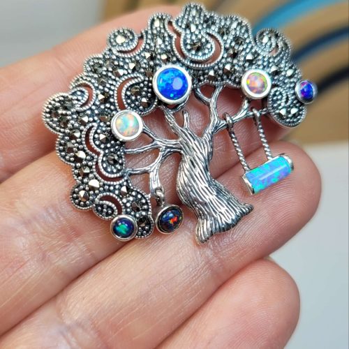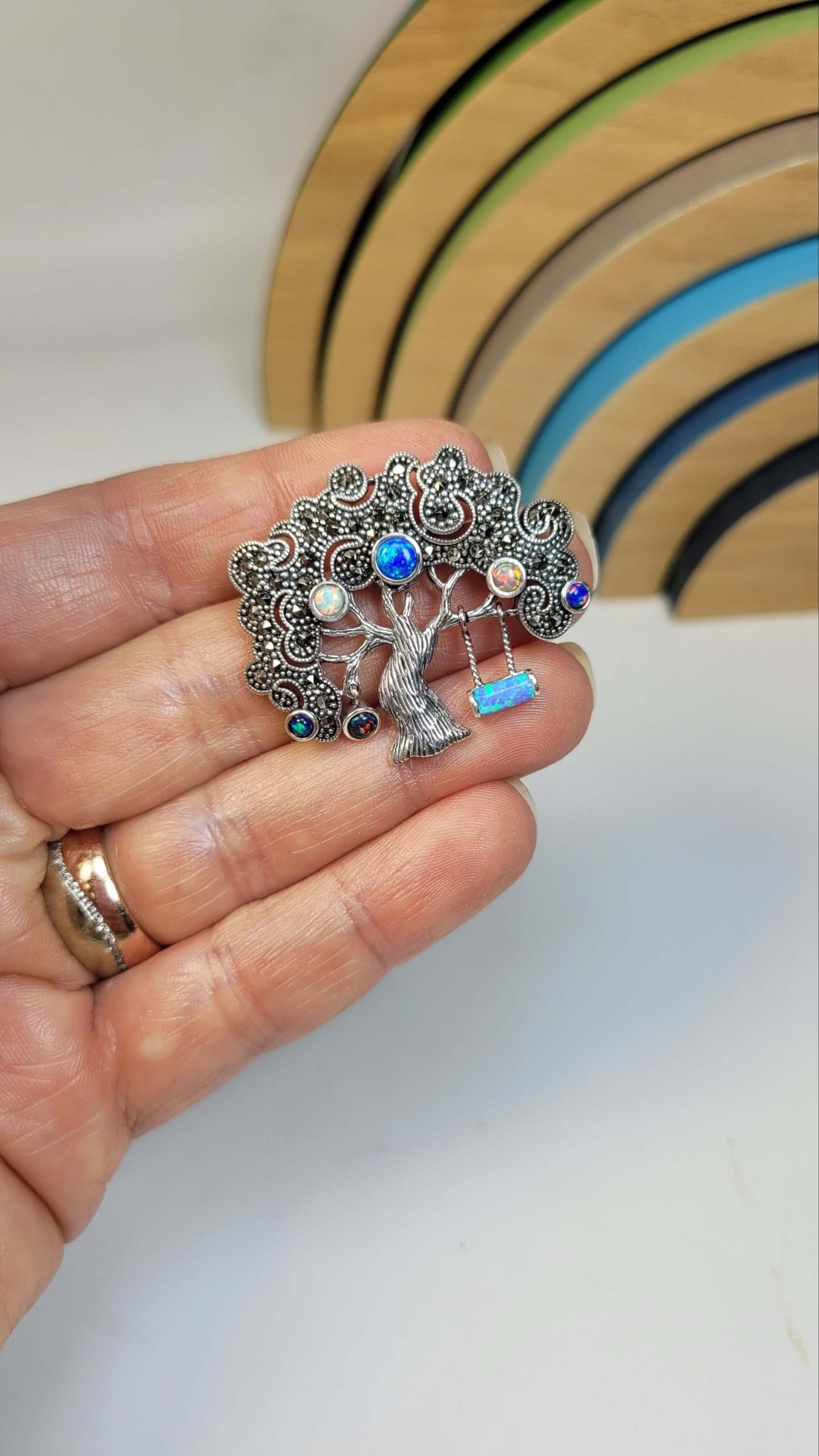 925 ayar gümüş markazit ve opal taşlı el yapımı hayat ağacı broş ve kolye ucu