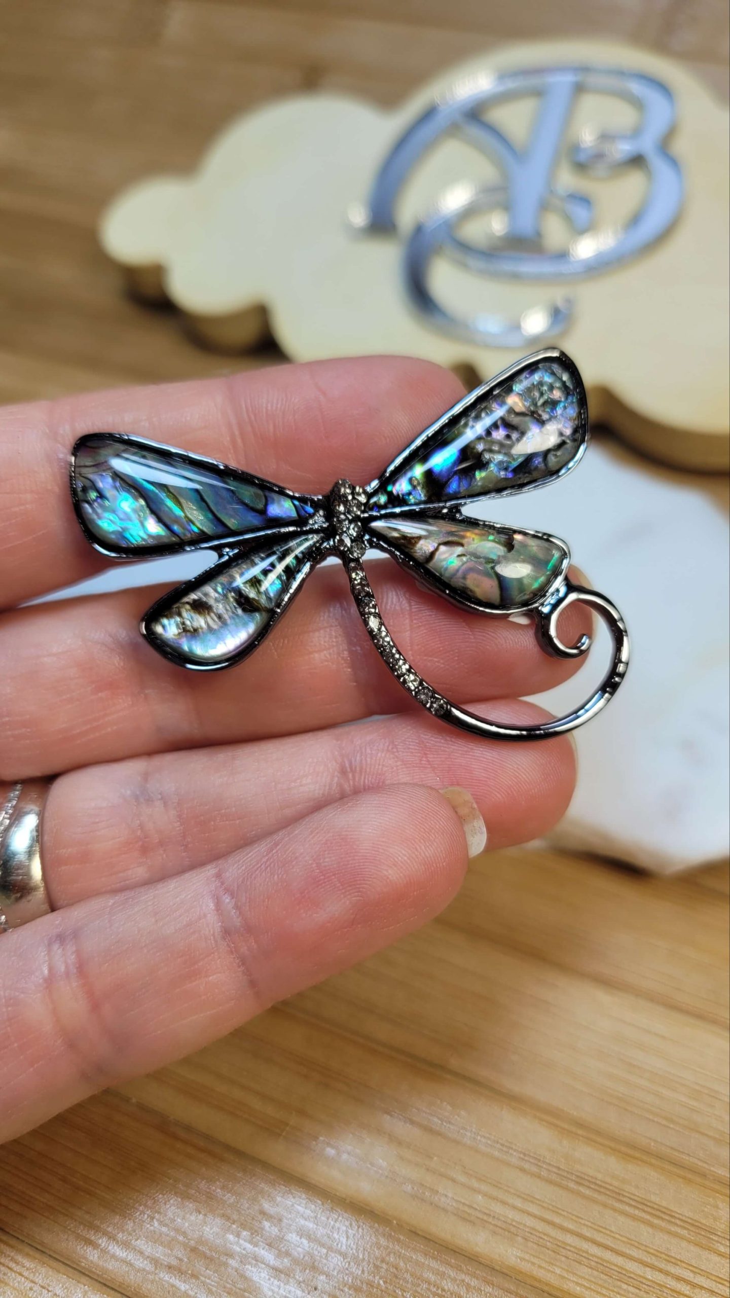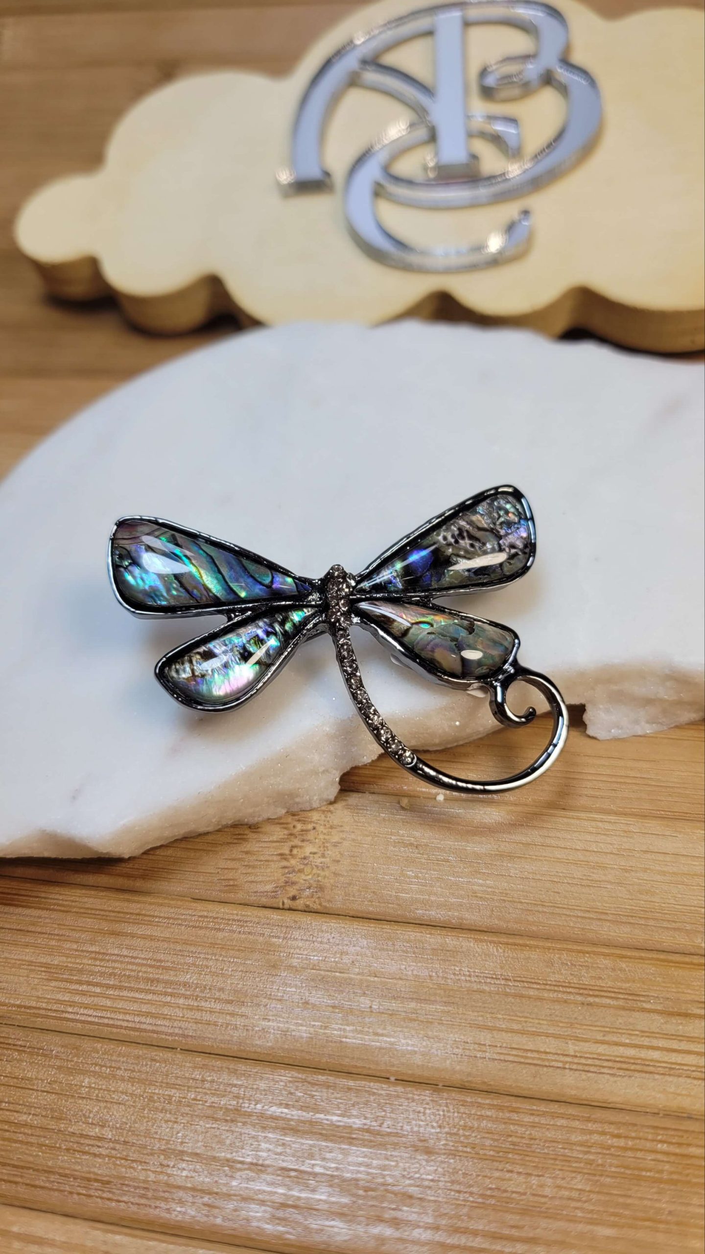 Abalon sedef – kristal taşlı-kıvrık kuyruk sihirli yusufçuk broş