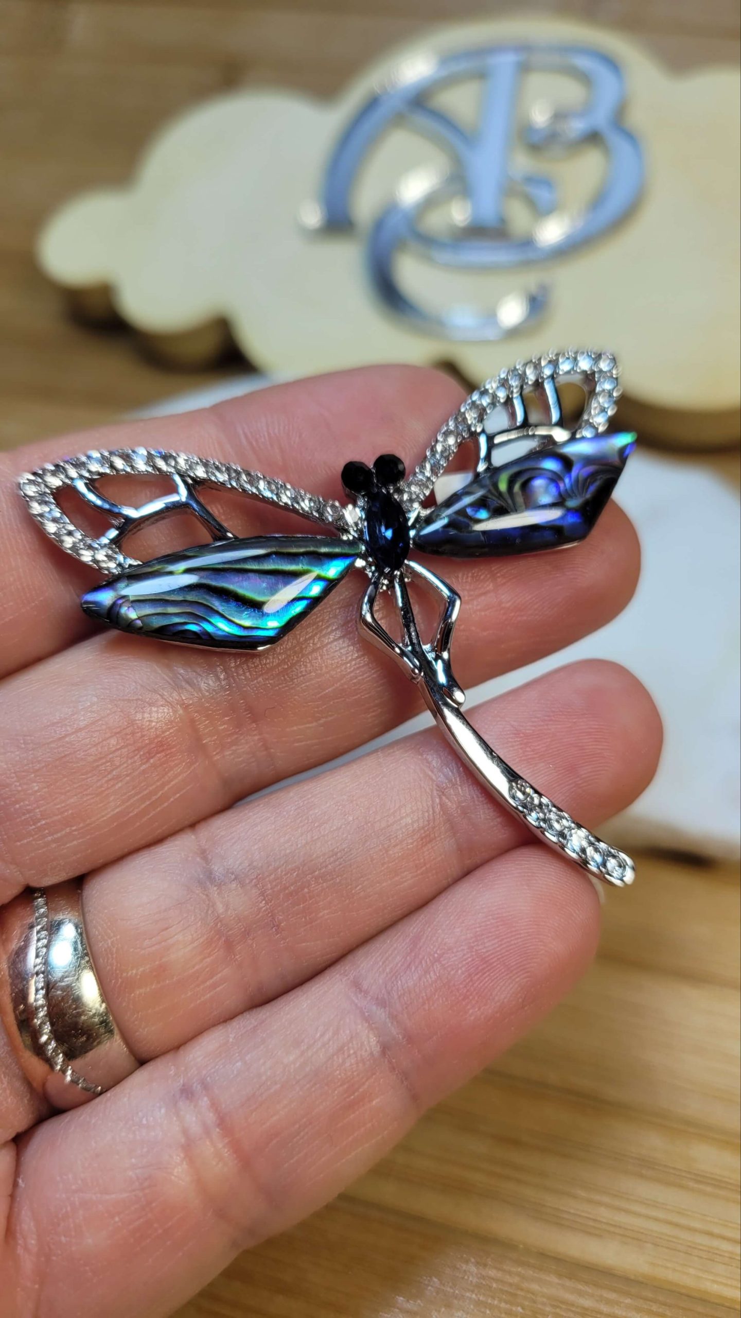 Abalon sedef – kristal taşlı sihirli yusufçuk broş