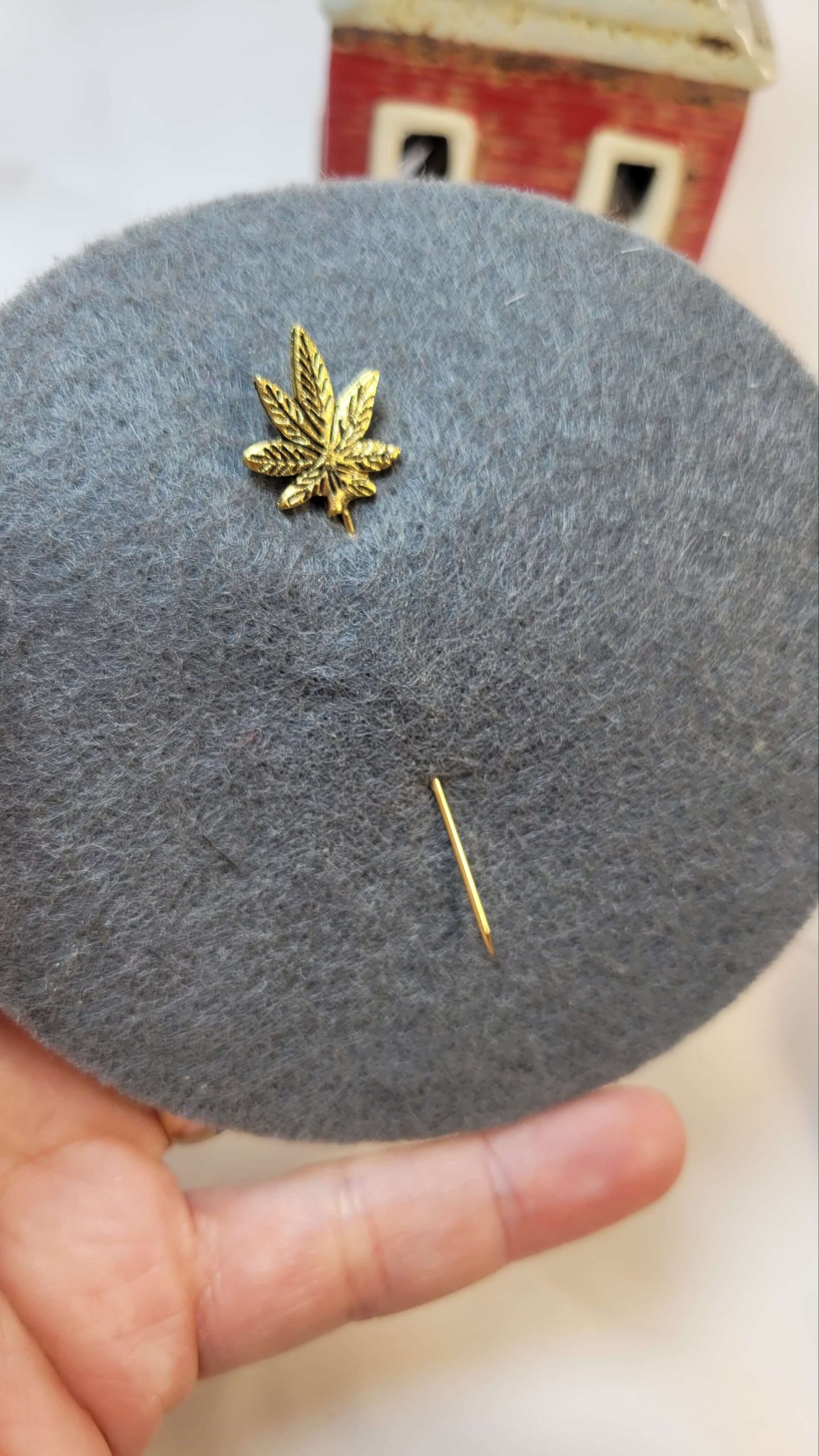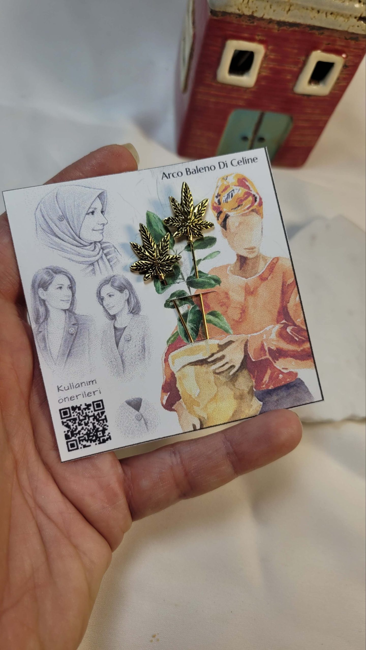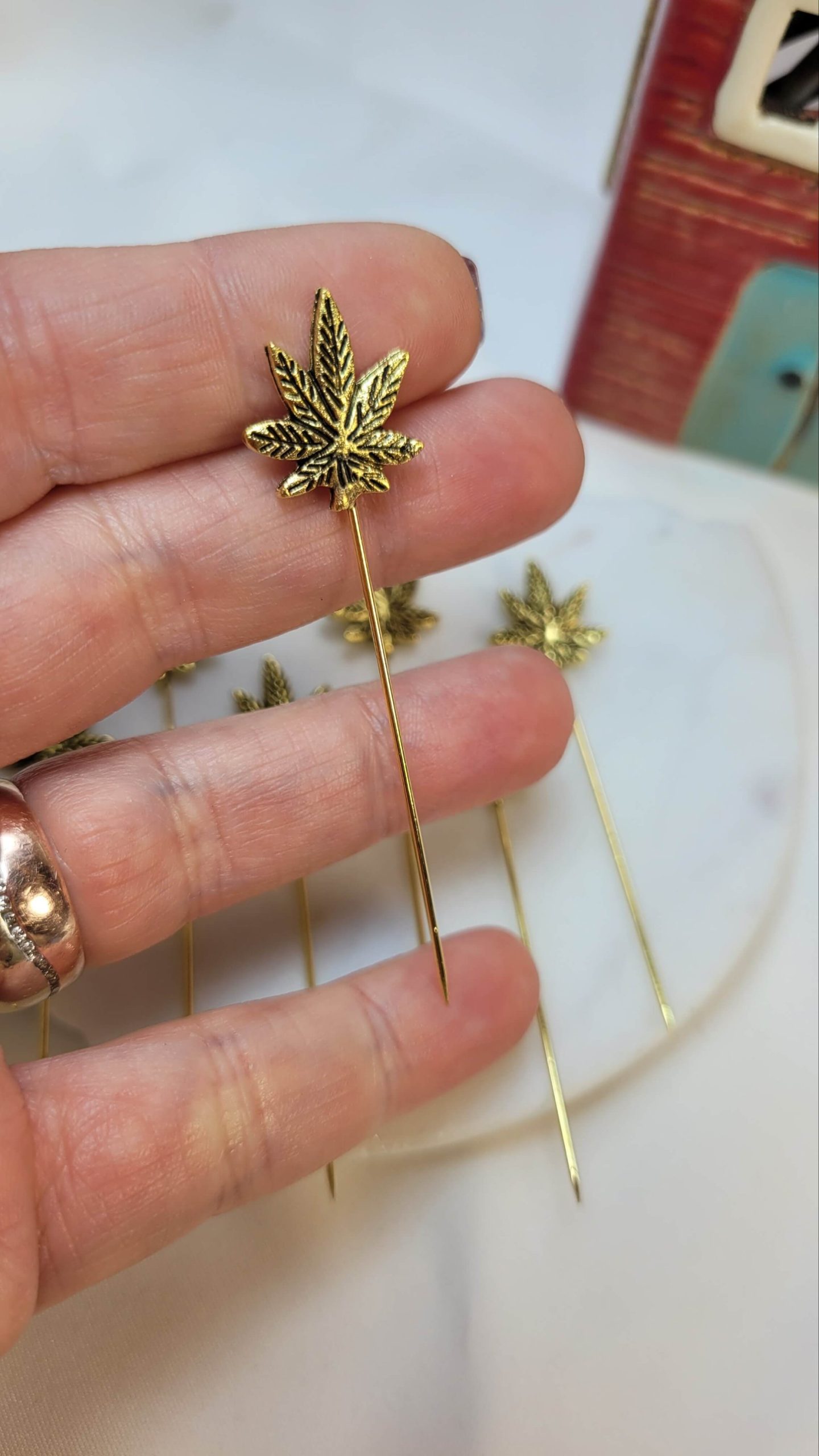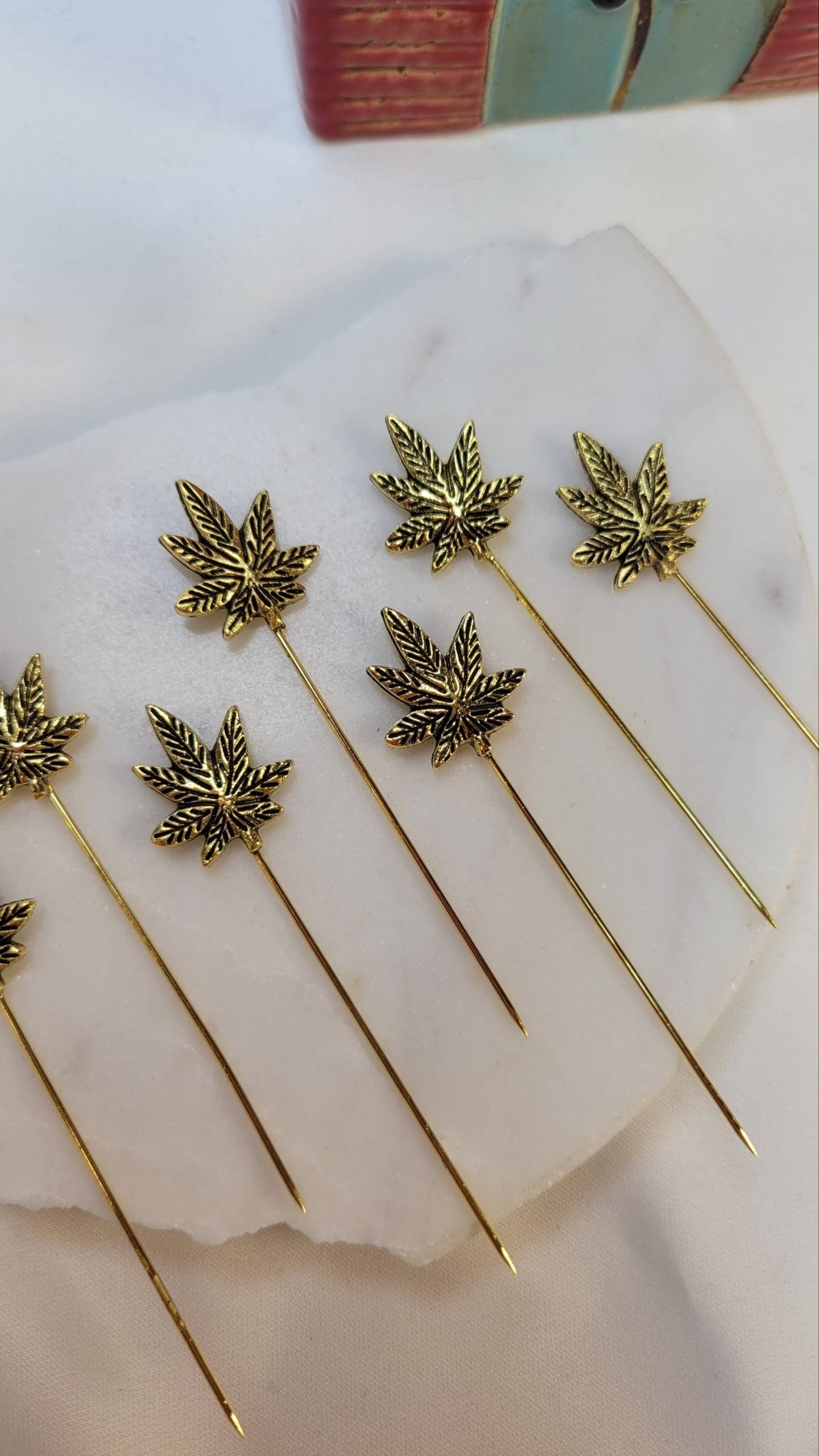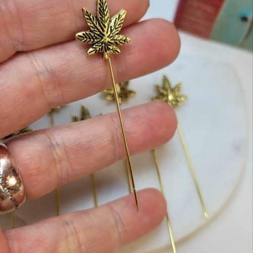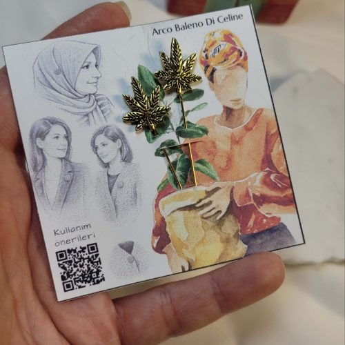 Altın rengi çınar yaprağı hijap iğnesi – eşarp iğnesi – yaka iğnesi