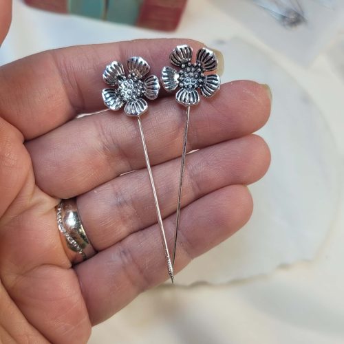 Gümüş rengi gelincik hijap iğnesi – eşarp iğnesi – yaka iğnesi