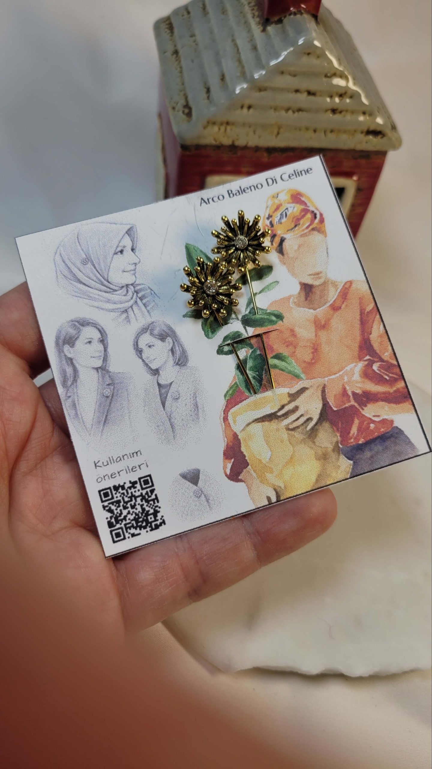 Altın rengi karahindiba hijap iğnesi – eşarp iğnesi – yaka iğnesi