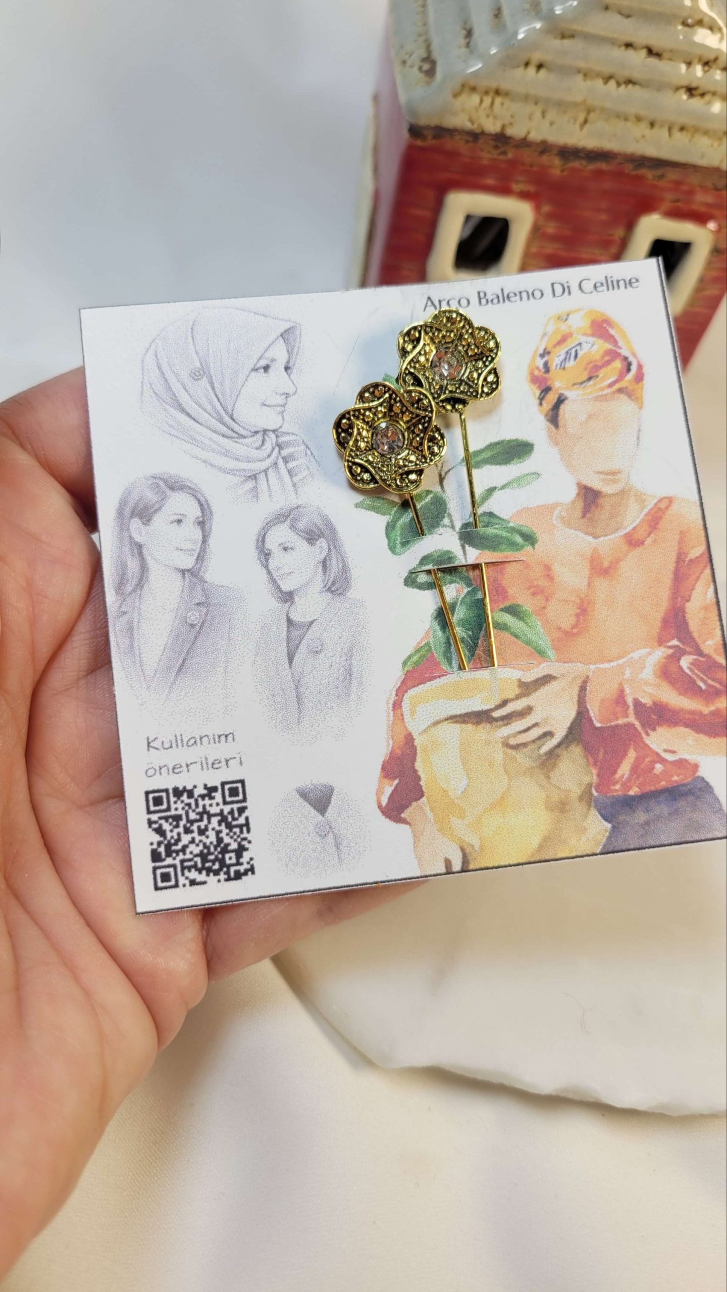 Altın rengi şakayık hijap iğnesi – eşarp iğnesi – yaka iğnesi