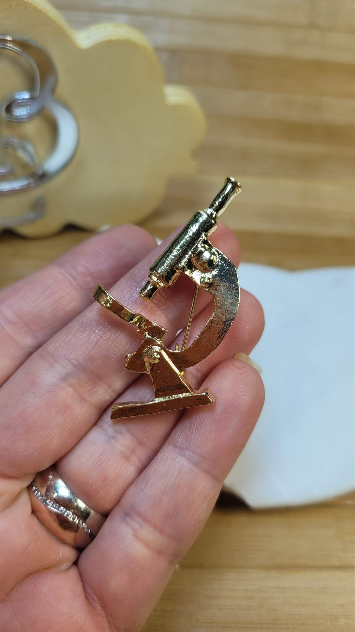 Altın renkli laborant kimyager mikroskop broş