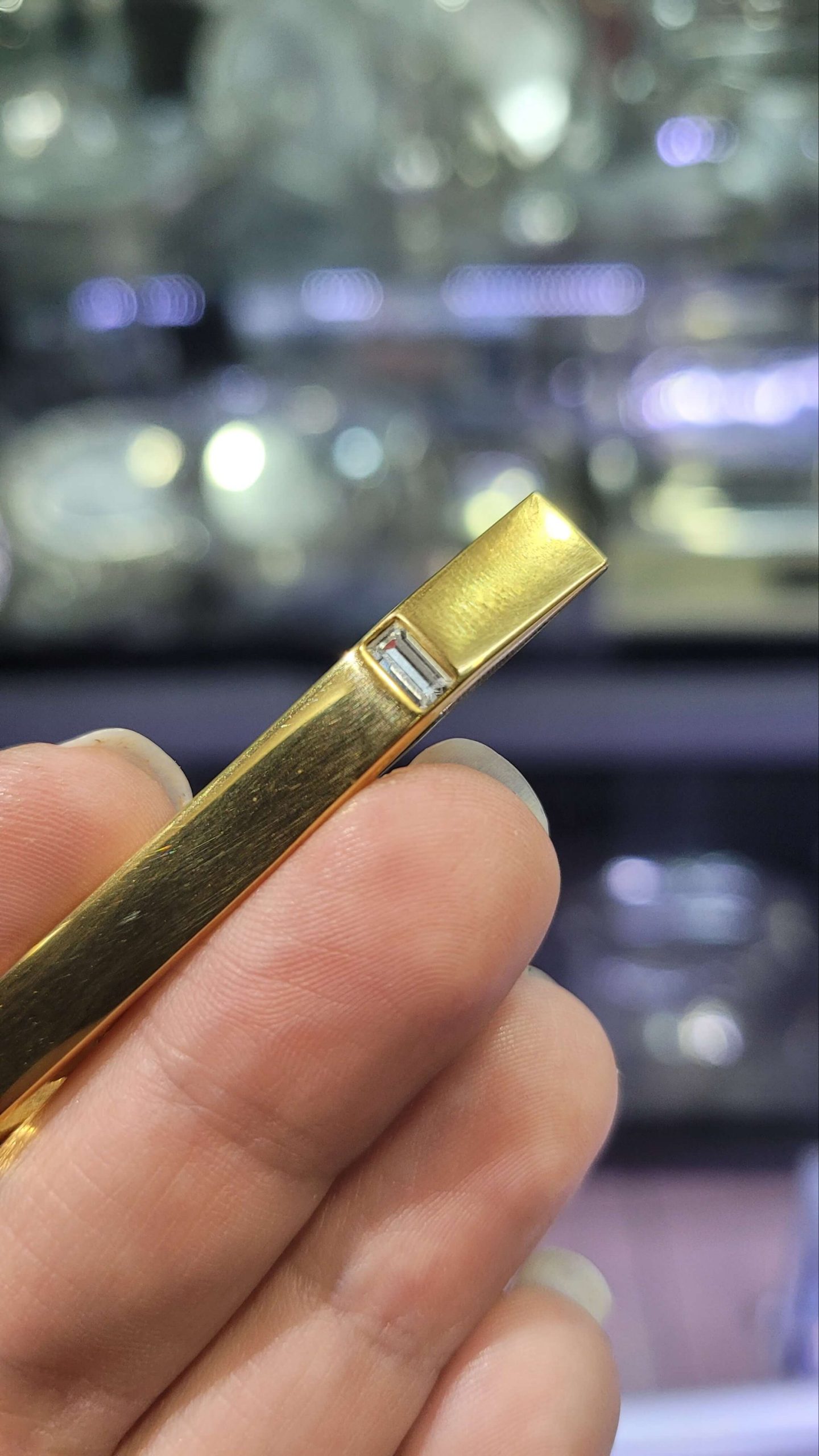 Altın sarı kristal taşlı kravat iğnesi