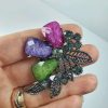 Antik gümüş – vintage kristal taşlı fotoğraf makinesi broş