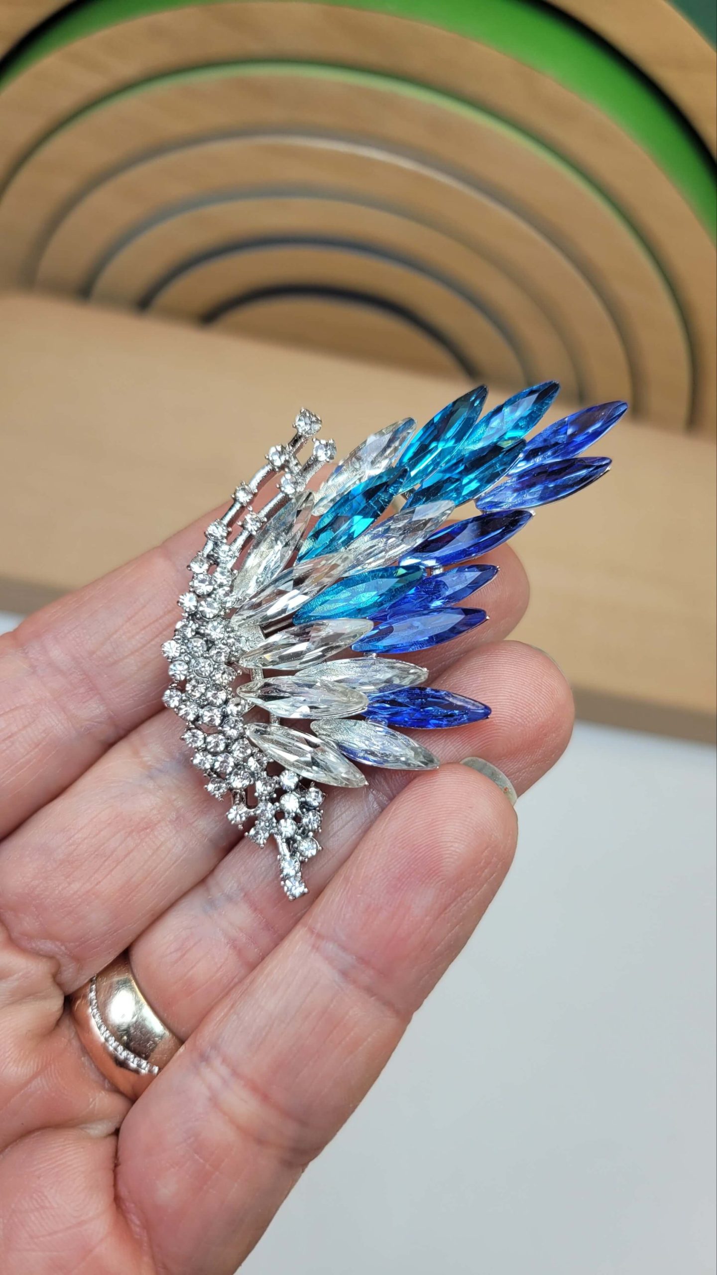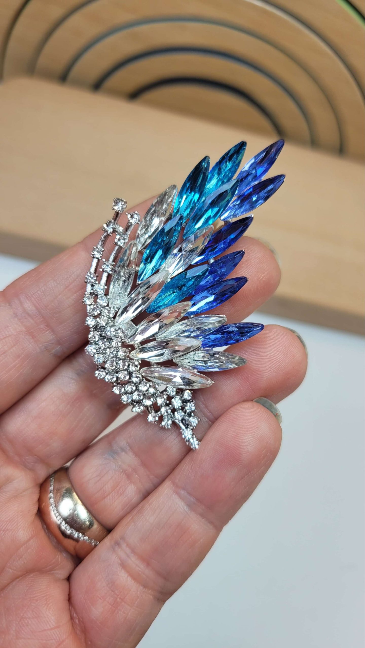 Beyaz mavj kristal taşlı huzur kelebek broş