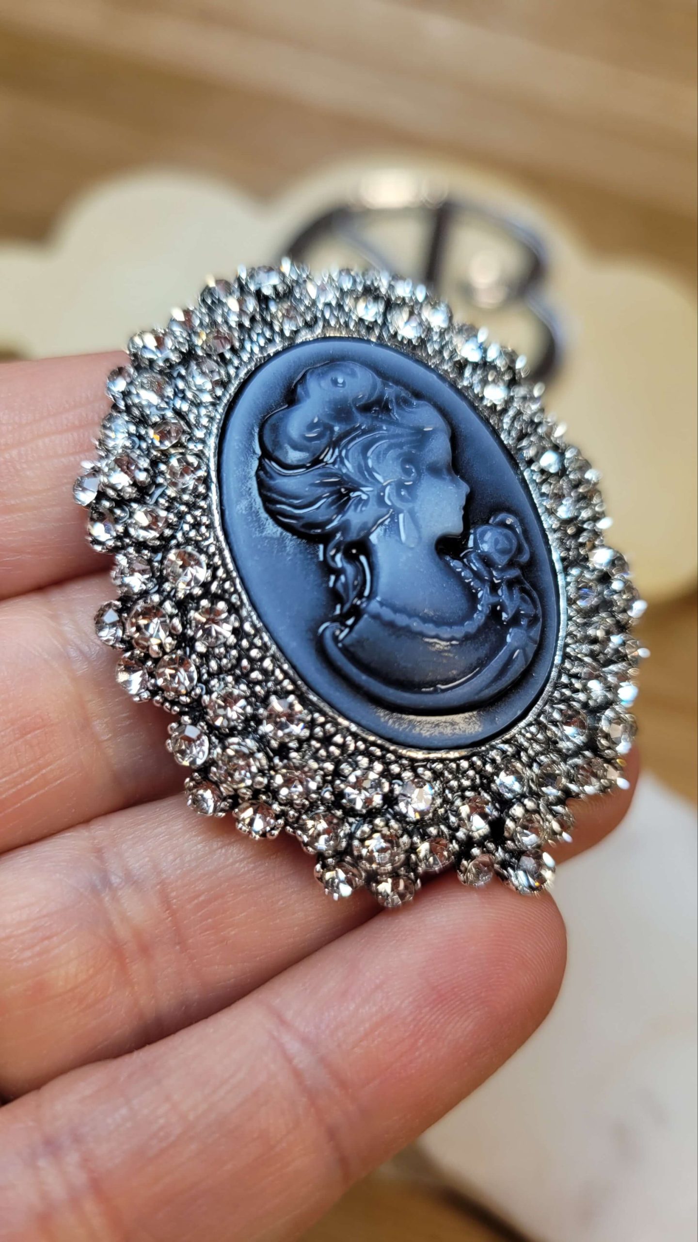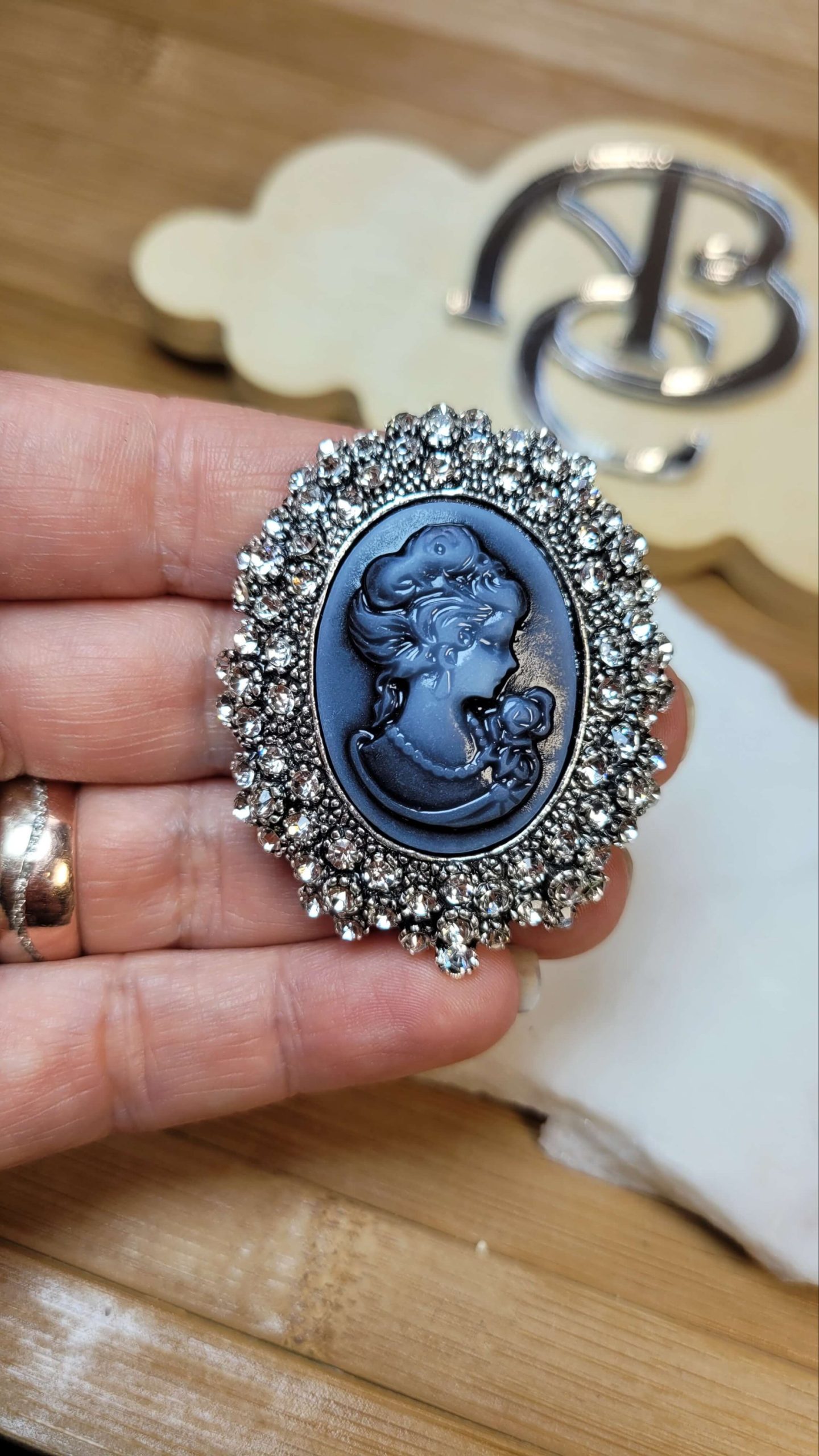 Chanel dalgası beyaz kristal taşlı incili kadın cameo broş