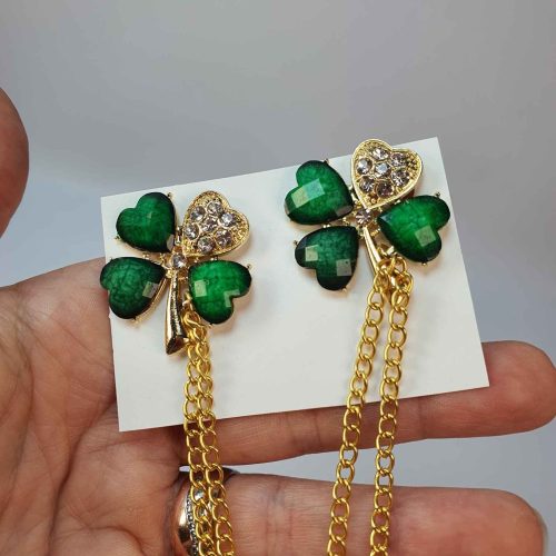 Dört yapraklı yonca şans zincirli yaka iğnesi