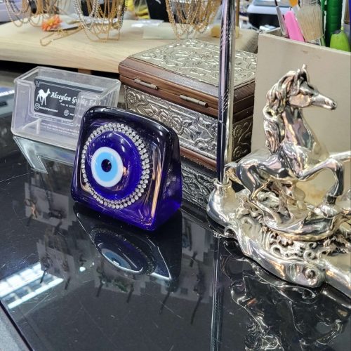 El işi gerçek cam-kristal taşlı nazarlık masa üstü aksesuarı ağırlık