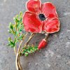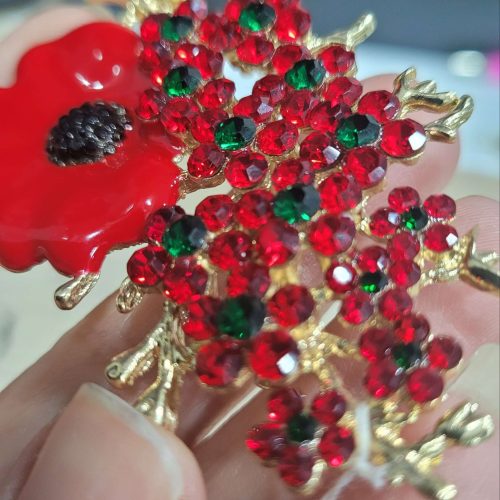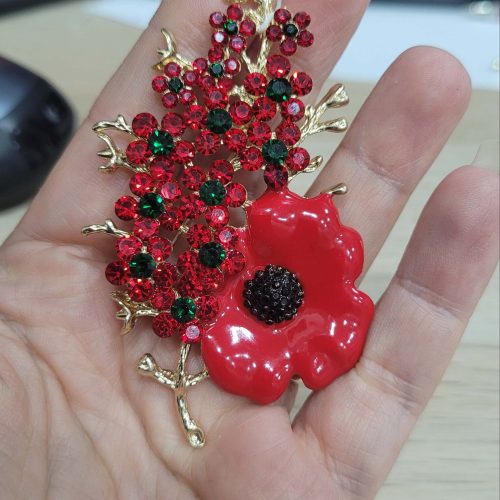 Gelincik tarlası kırmızı mineli kırmızı kristal taşlı gelincik broş