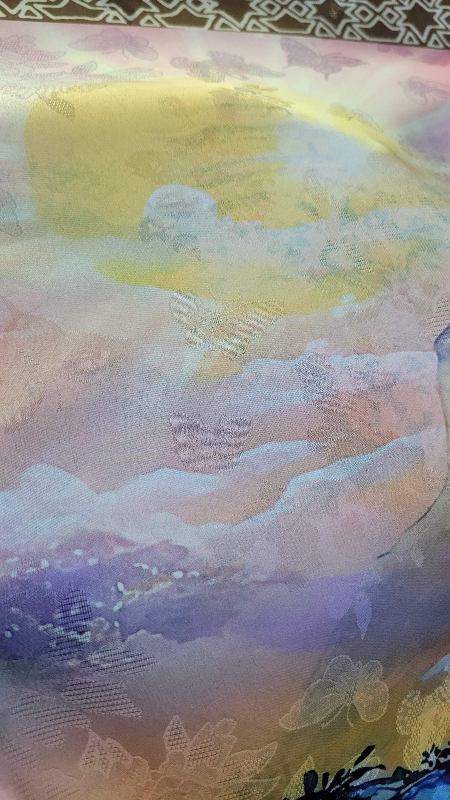 Japon sakura dağları – Mor pembe sakura çiçekleri ipeksi saten jakarlı çift yönlü şal
