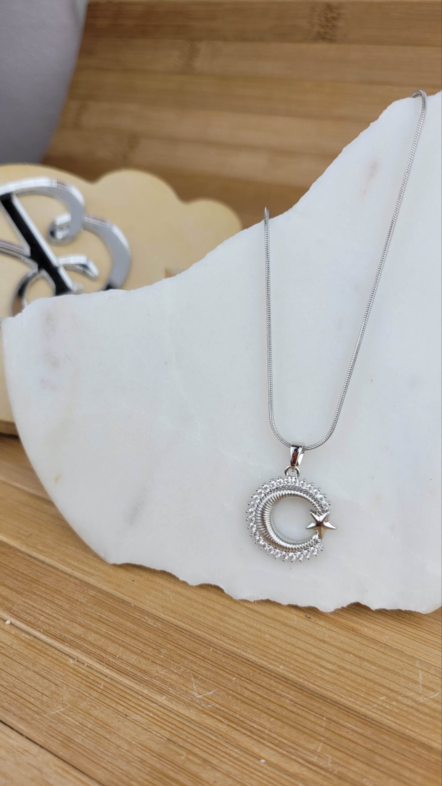 Gümüş kaplama zirkon taşlı ayyıldız kolye ve zincir