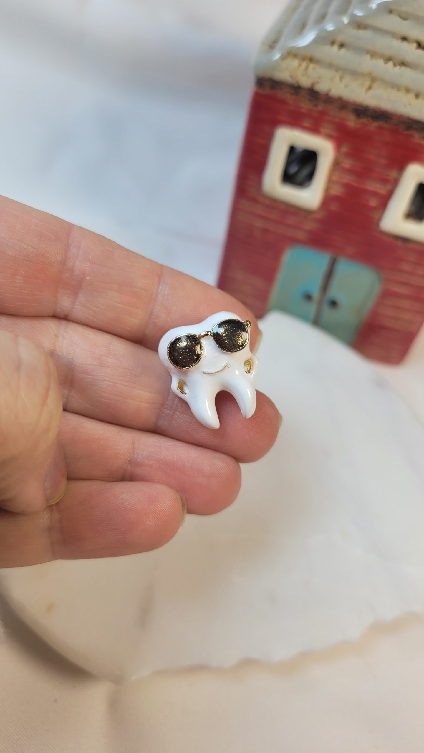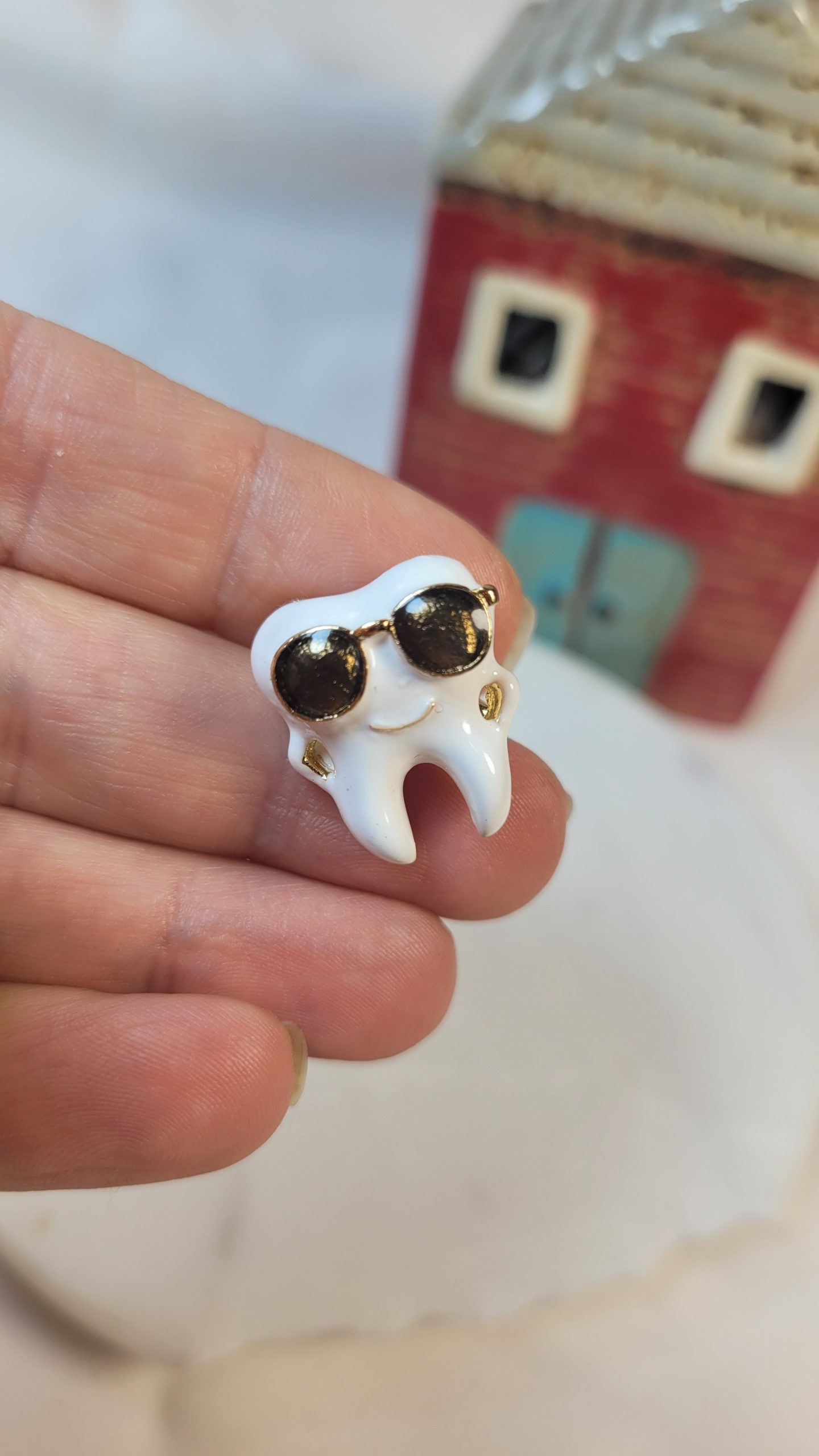 Güneş gözlüklü diş hekimi dişçi beyaz diş broş