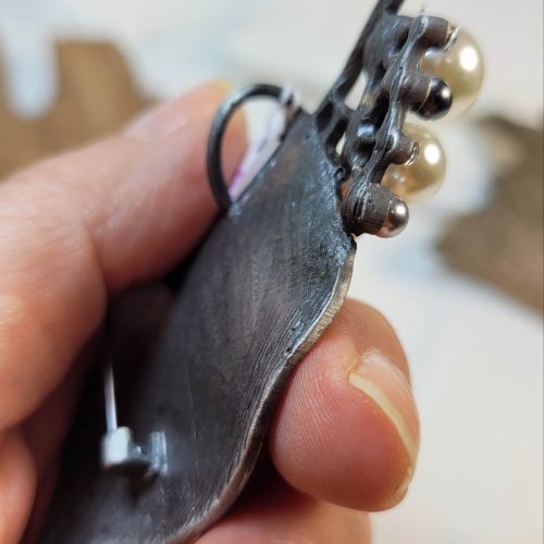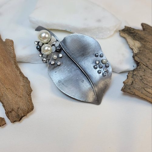 İncili kristal taşlı antik gümüş kaplama yaprak broş ve kolye ucu