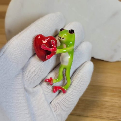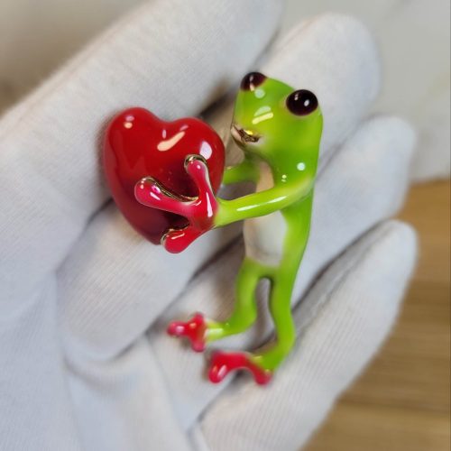 Kalbi elinde yeşil kurbağa prens broş