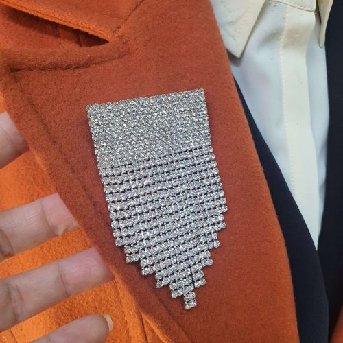Kare form tırnaklı kristal taş dikkat çek broş
