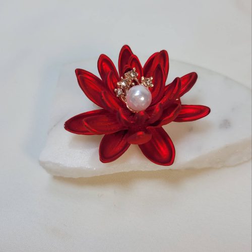 Kırmızı kadife finişli kırmızı lotus çiçek broş yeni yıl çiçek broş