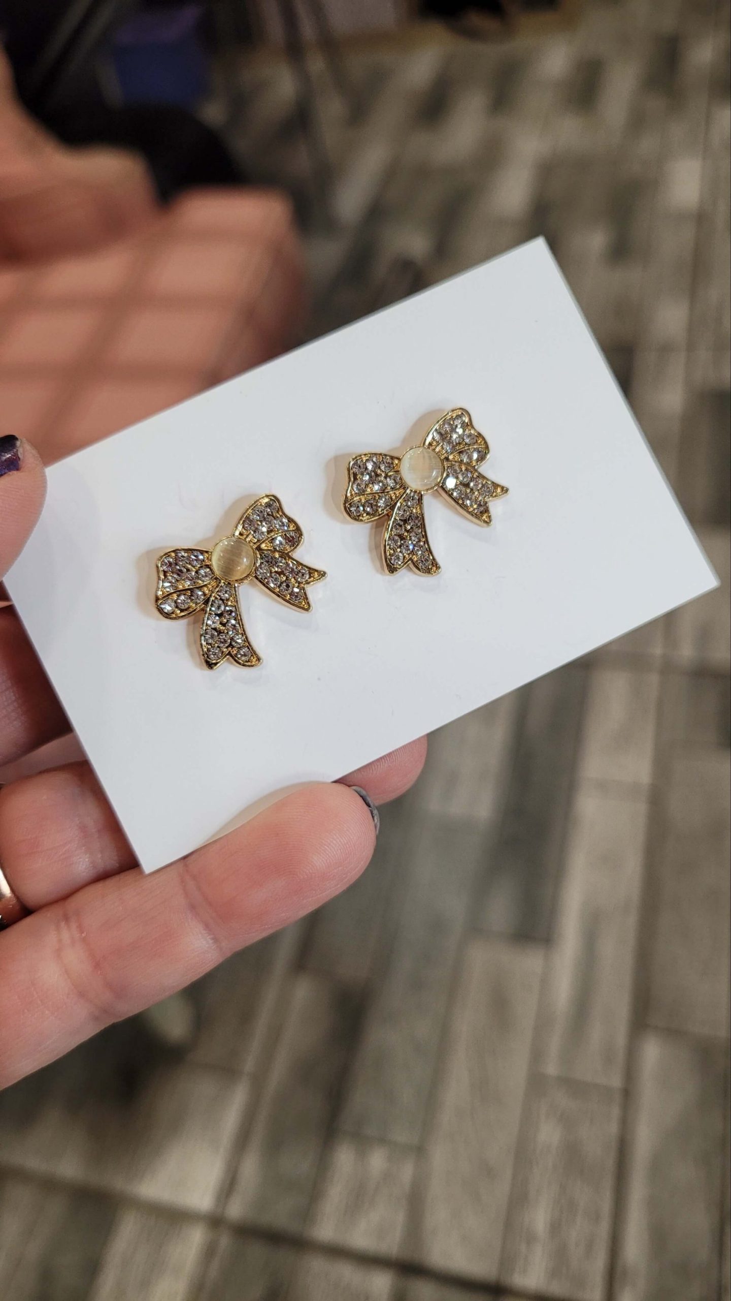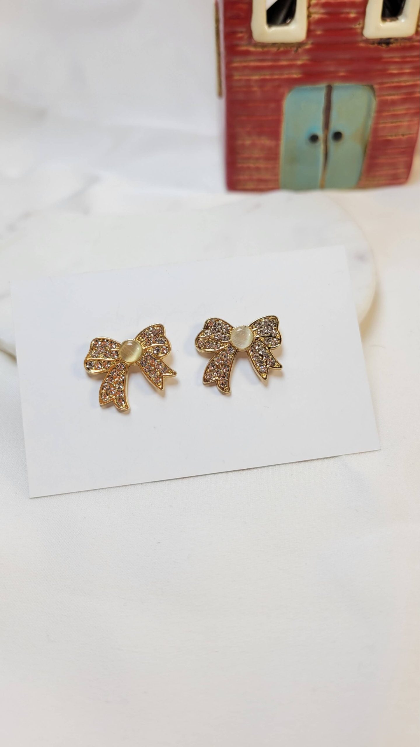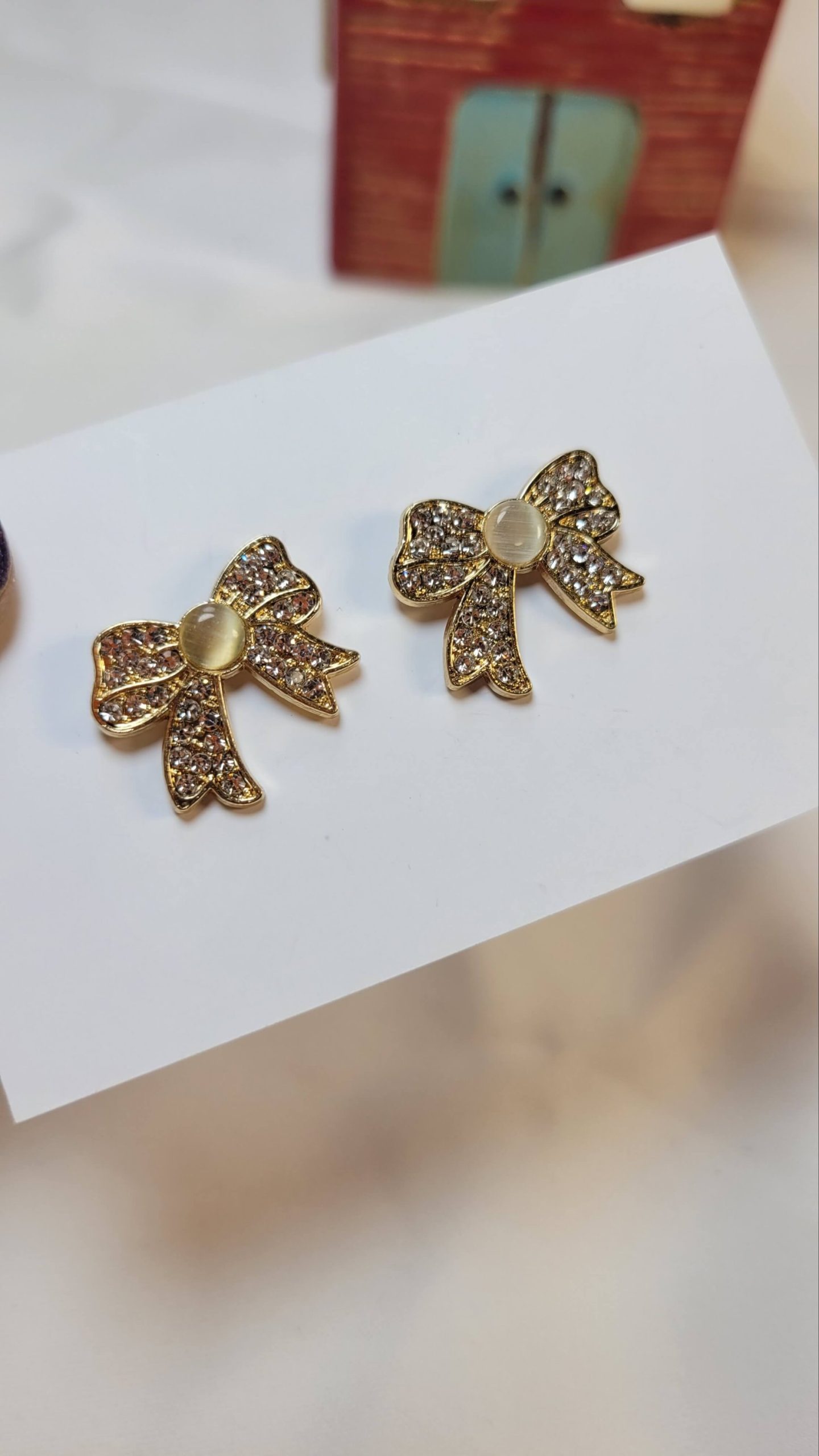 Kristal taşlı altın kaplama sedefli fiyonk sabitleme rozeti