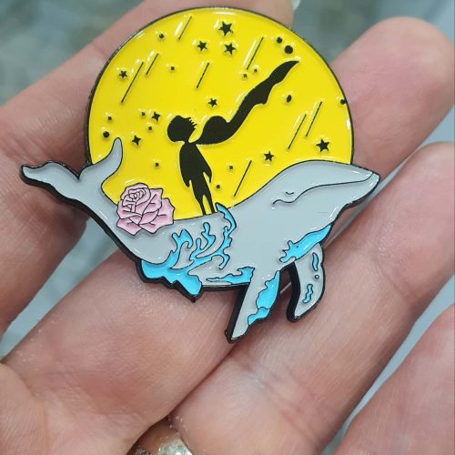 Küçük prens gülüyle balina üzerinde rozet