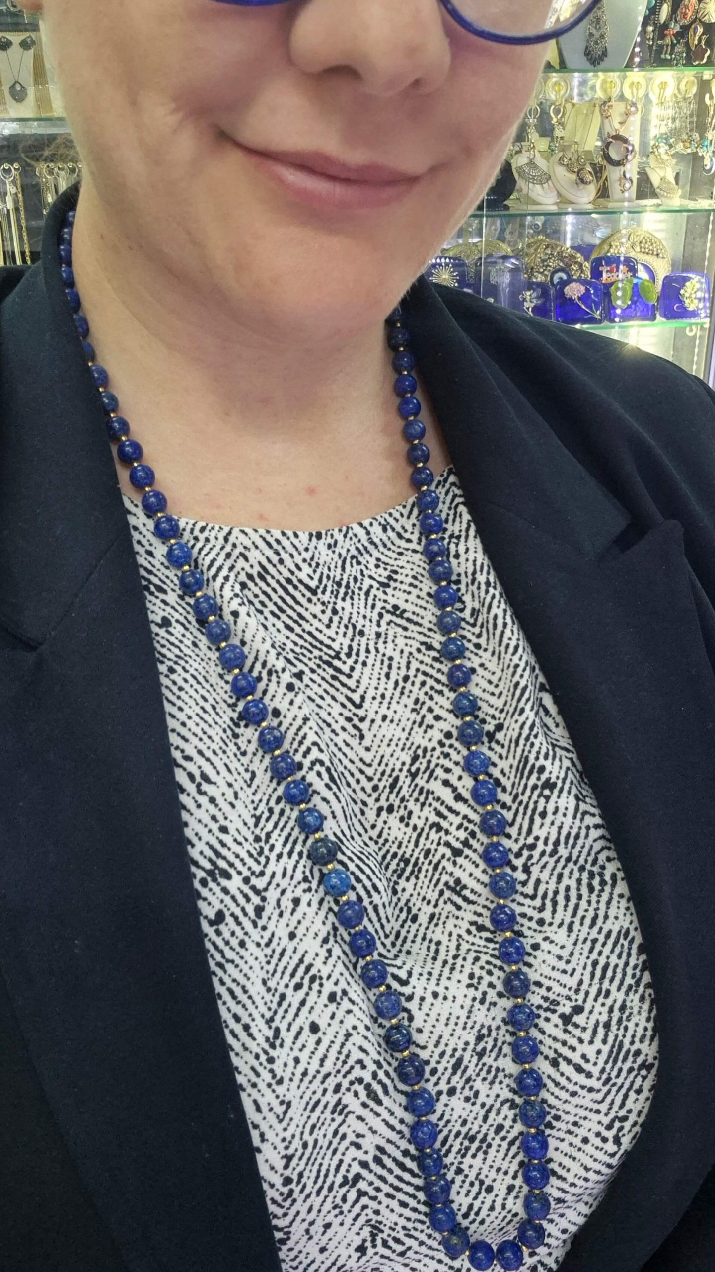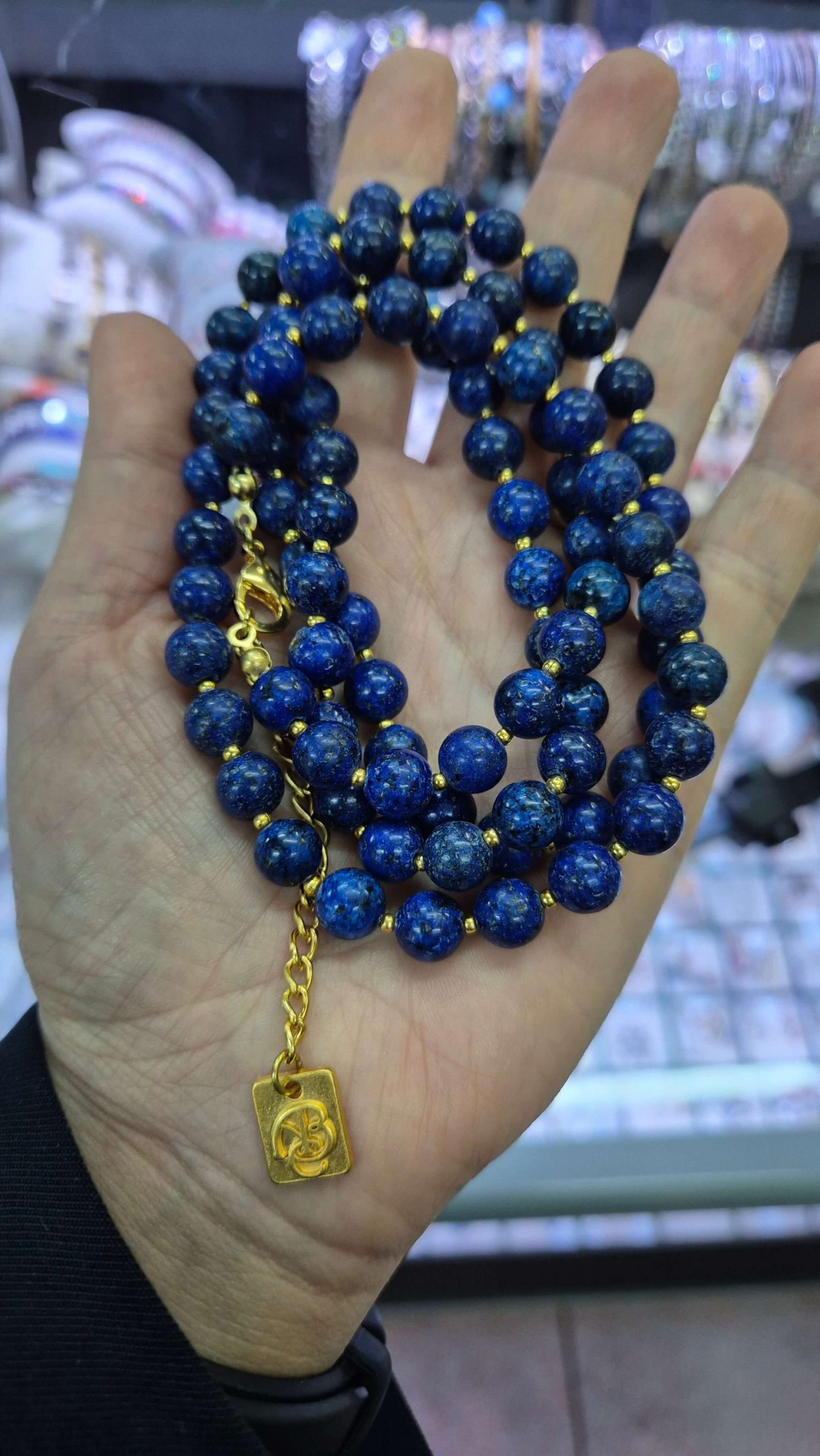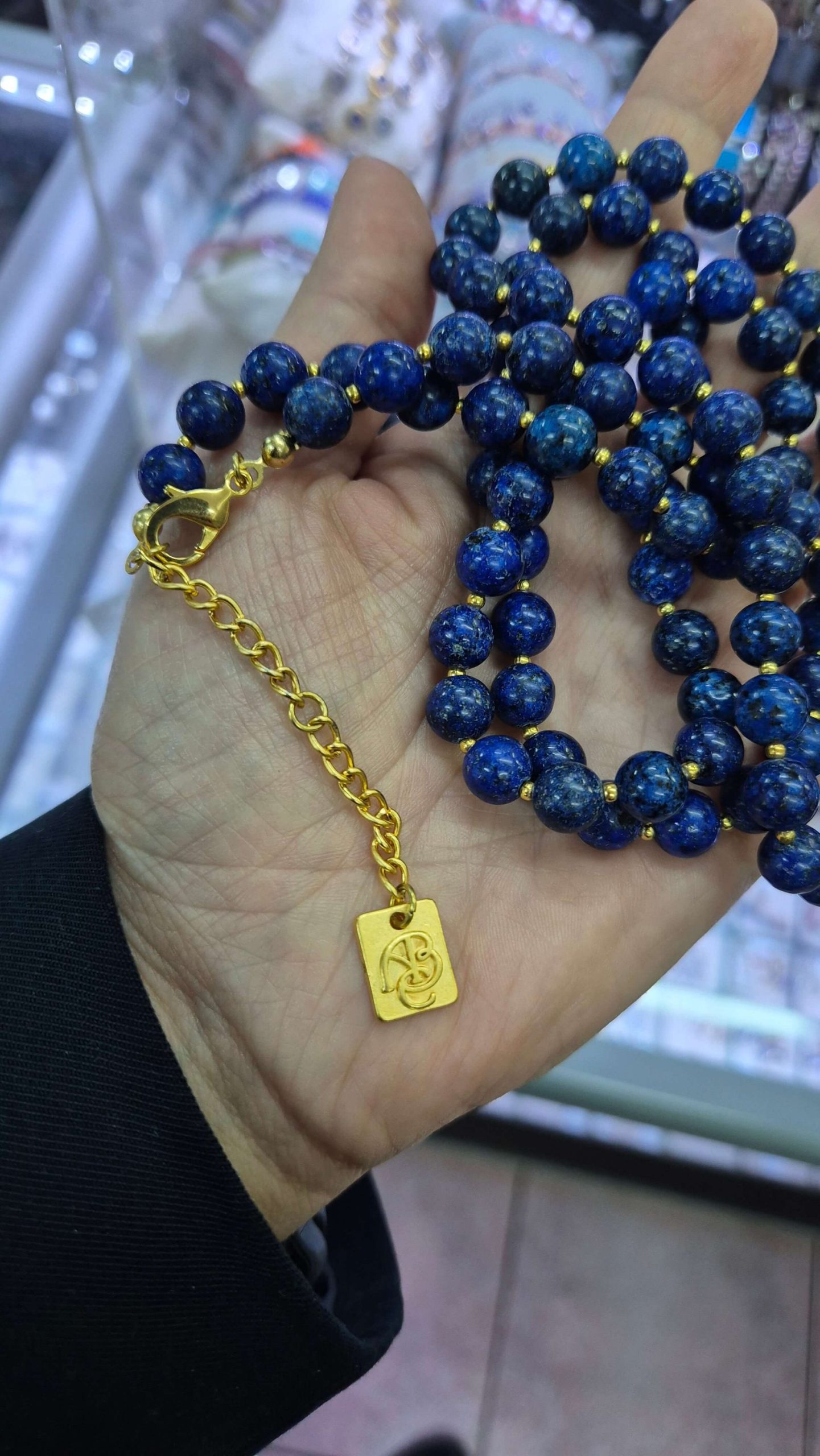 Lapis doğal taşlı uzun altın renkli kolye( broş ekli değildir. Sadece kolye gelecektir) Broş kolyesi