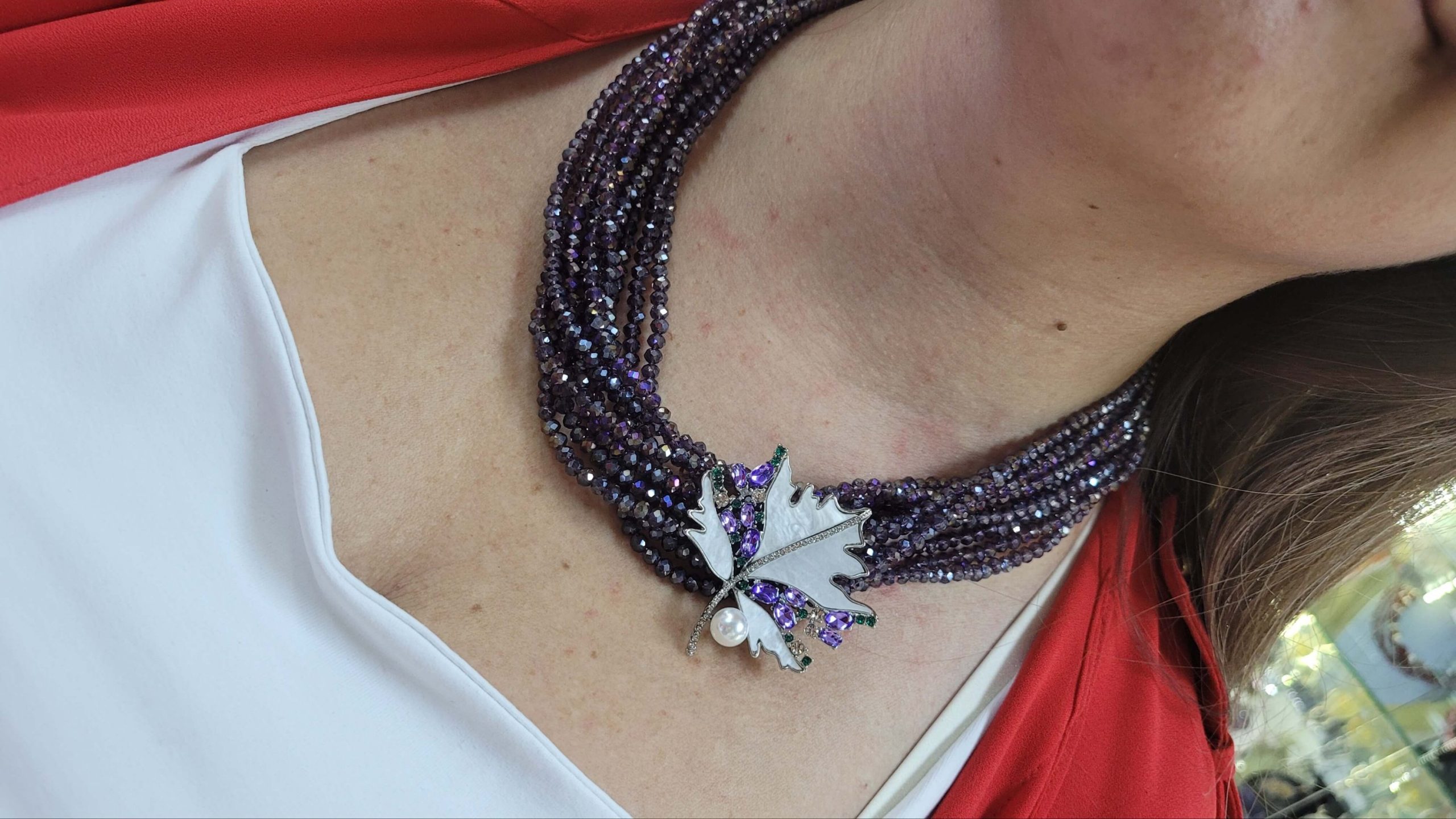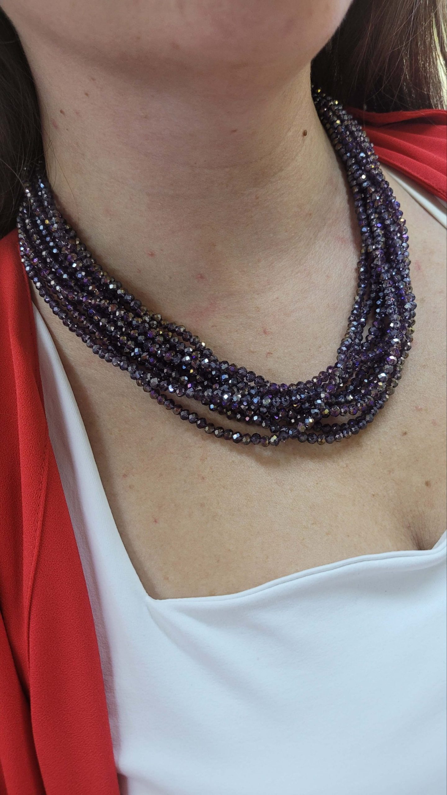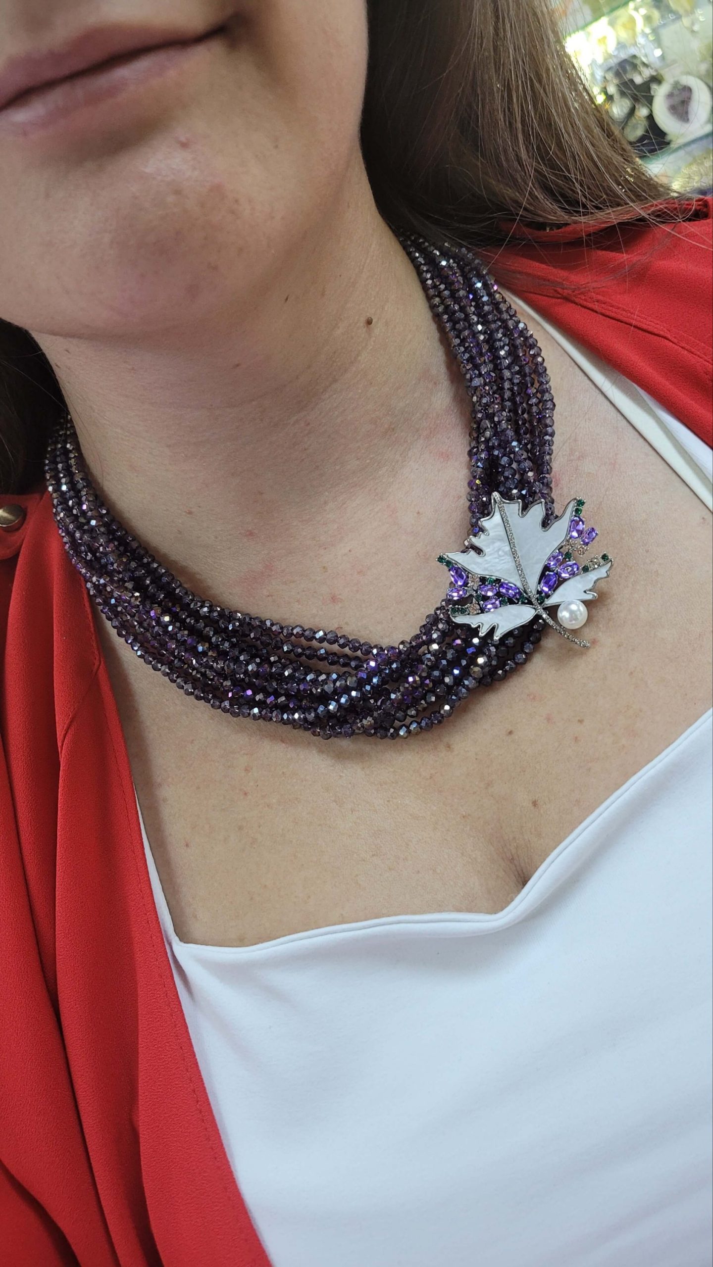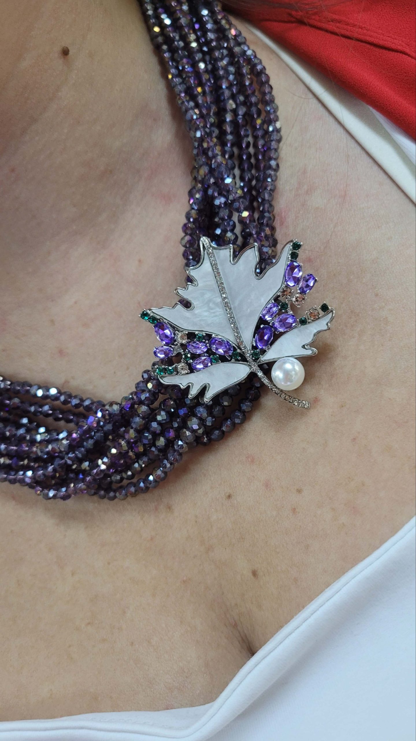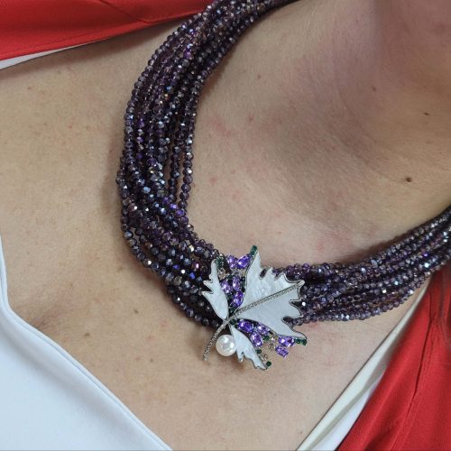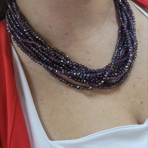 Lila mor kristal taşlı 10 dizi ışıl kolye – broş kolyesi (broş dahil değildir)