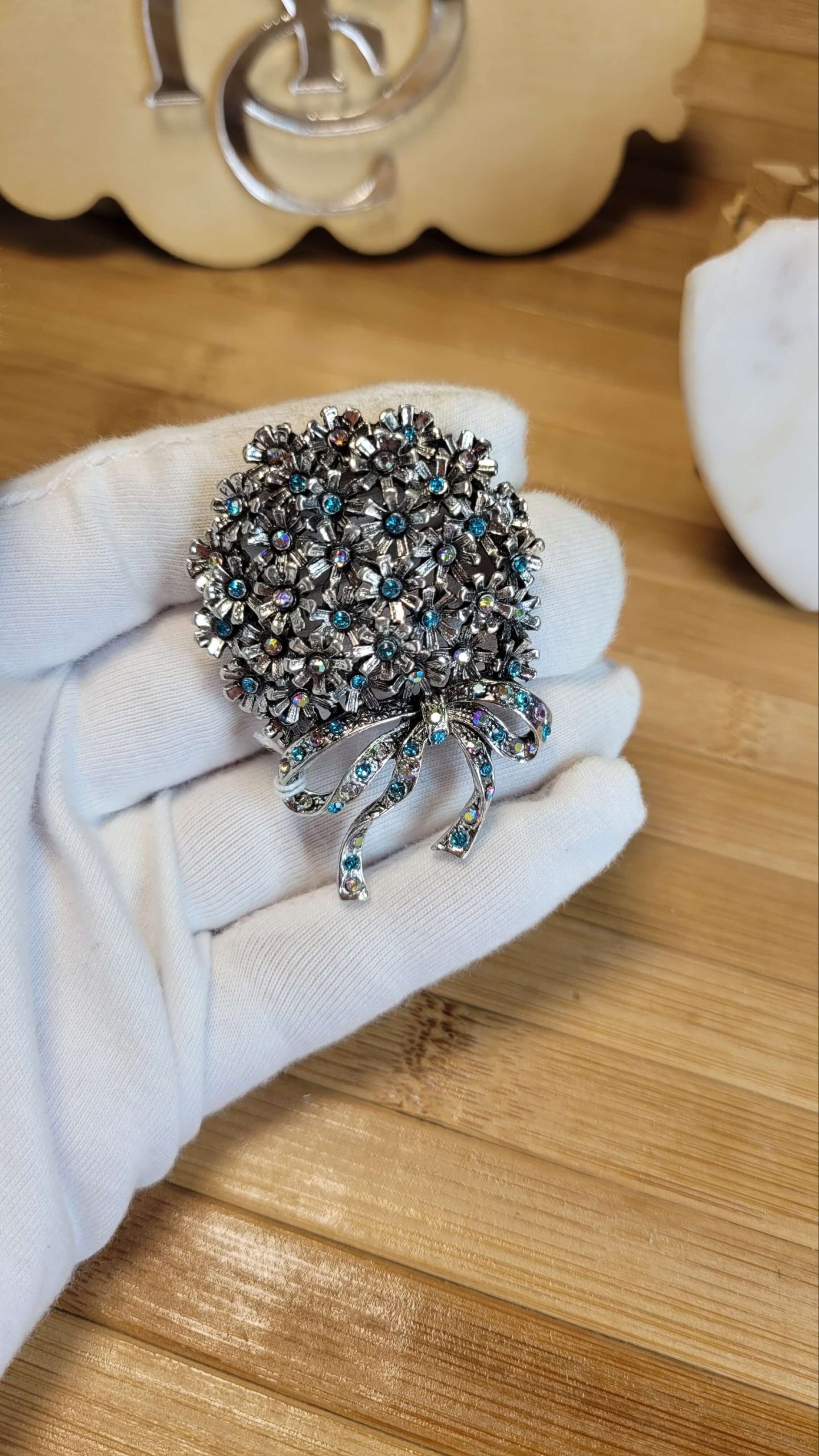 Mavi mini huzur buket broş