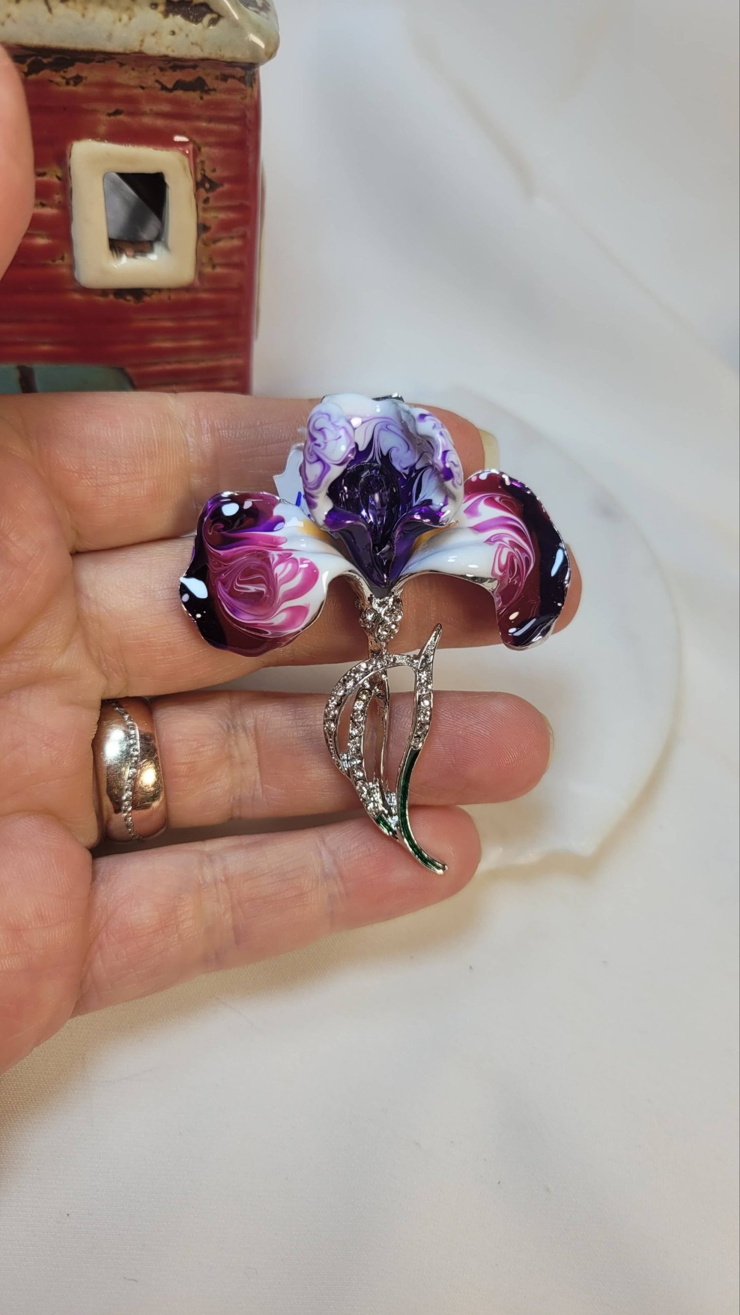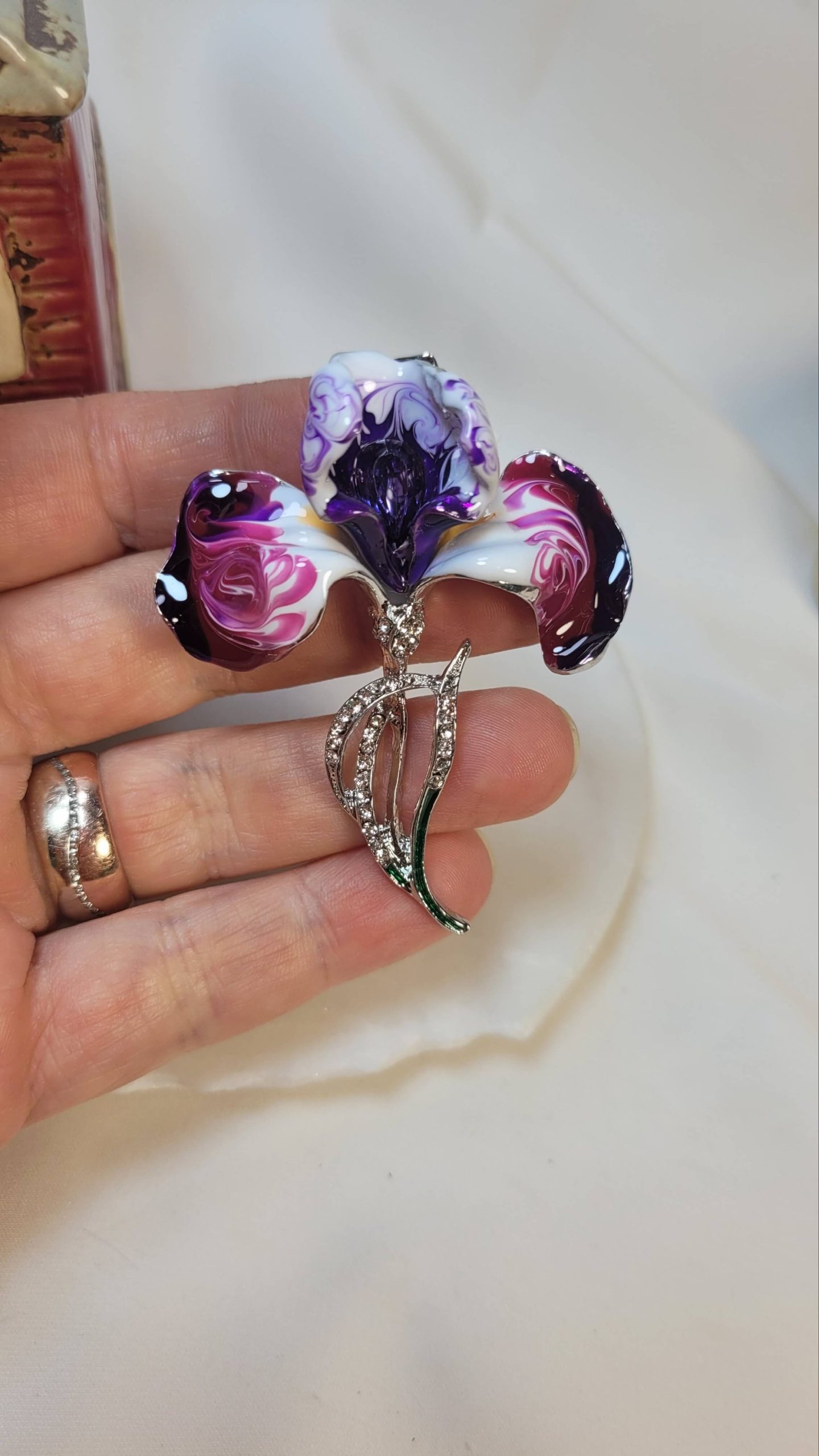 İncili damla beyaz mineli ibrik - mavi pembe çiçekli bahçıvan suluk broş