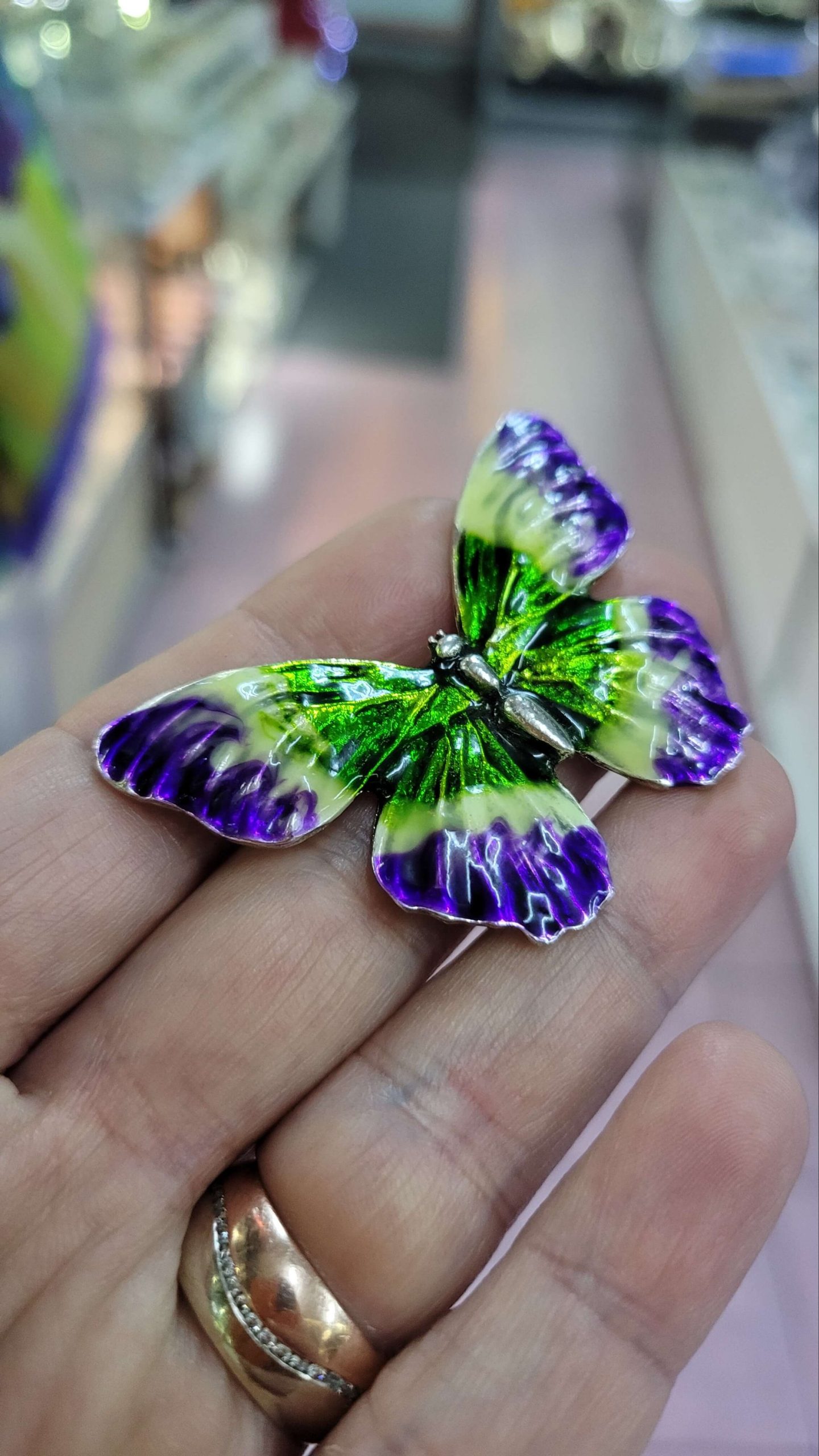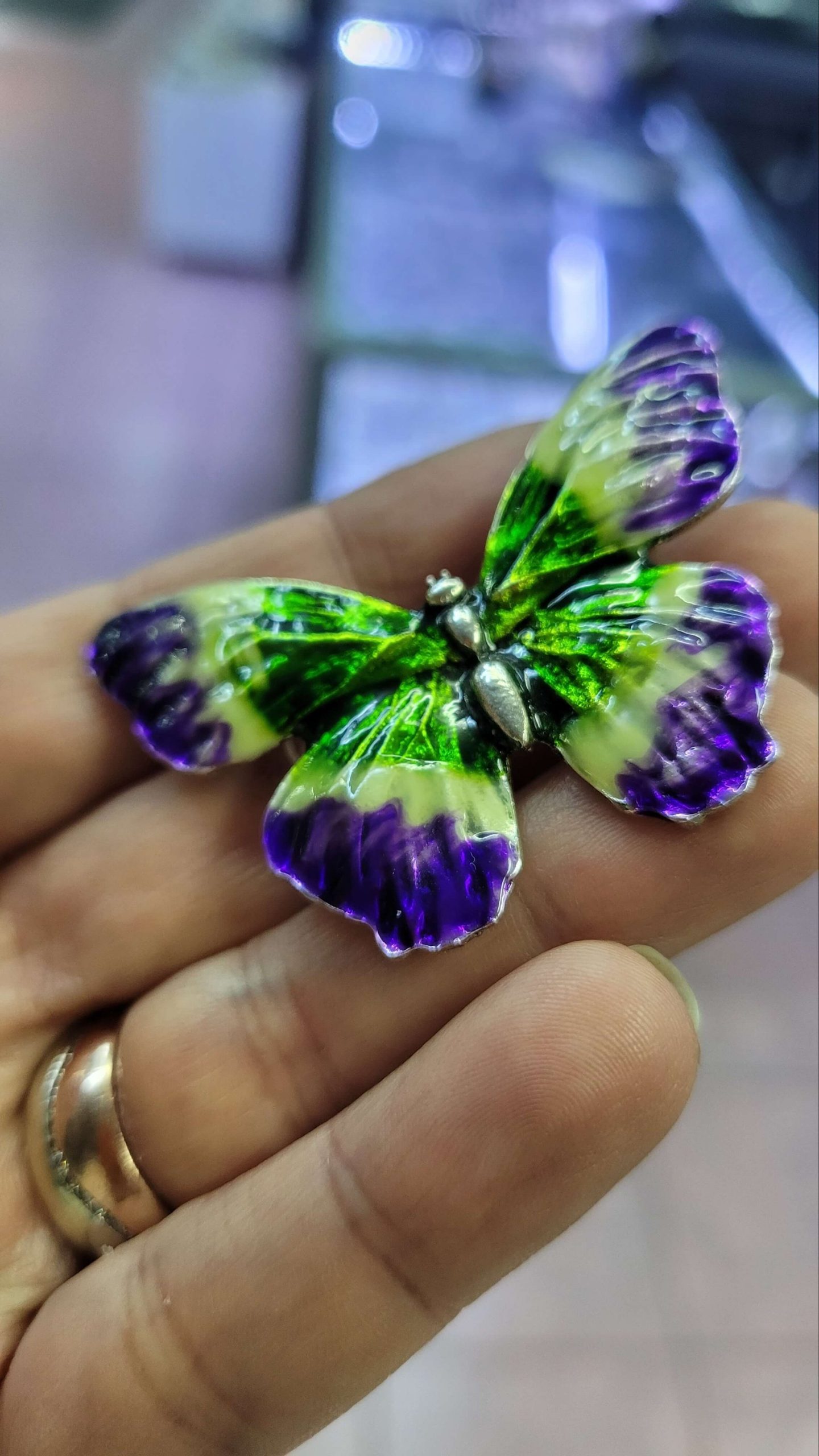 Mor yeşil mineli naif kelebek broş