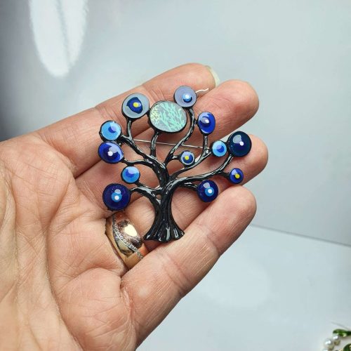 Nazar ağacı mavi mineli Göz nazarlık broş ve kolye ucu