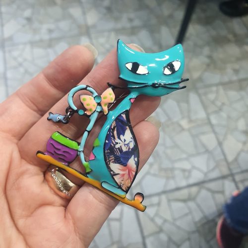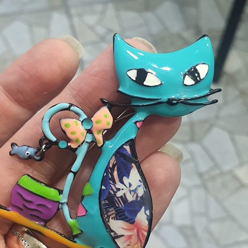 Olta kuyruklu mavi janti kedi broş ve kolye ucu