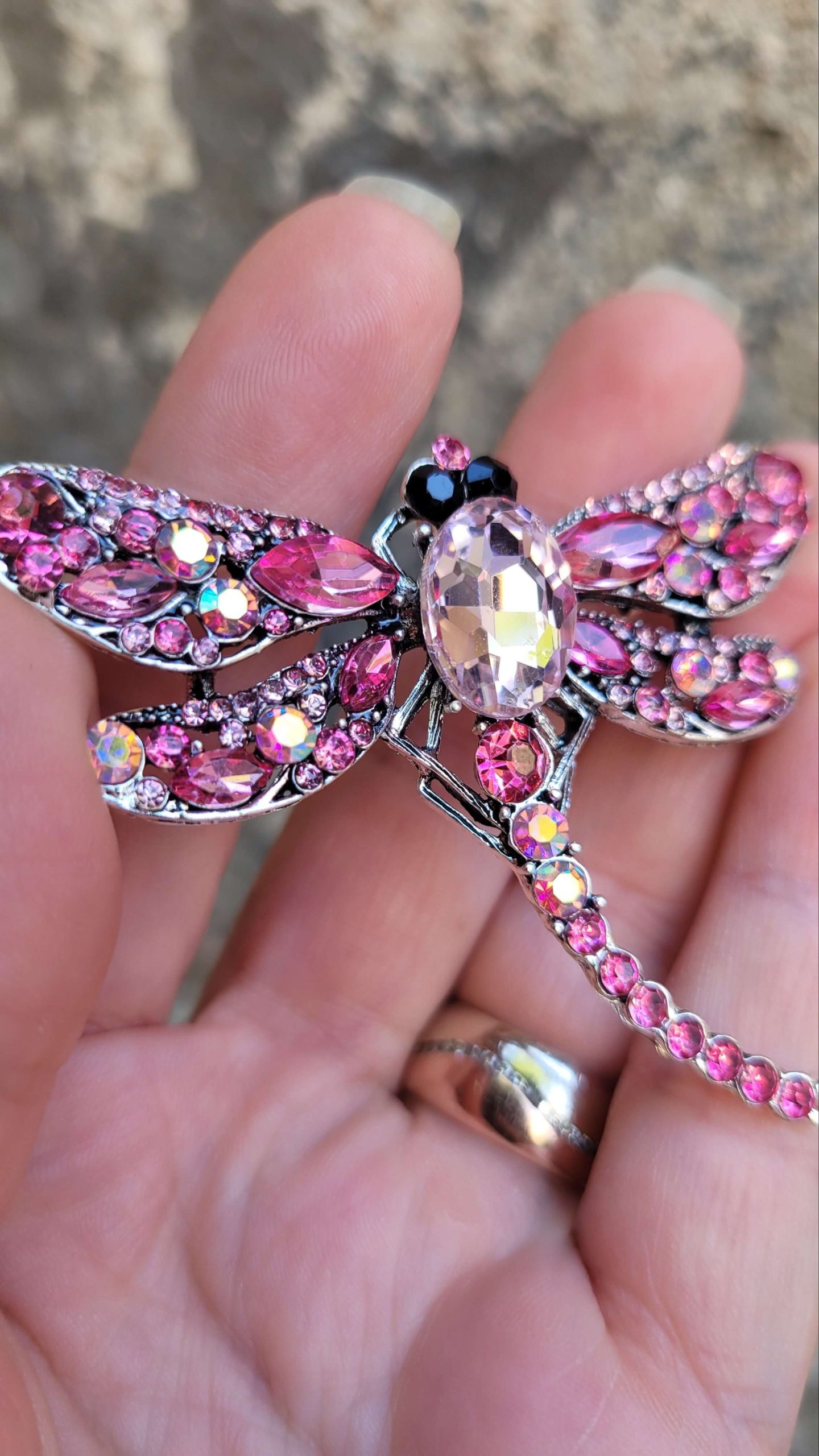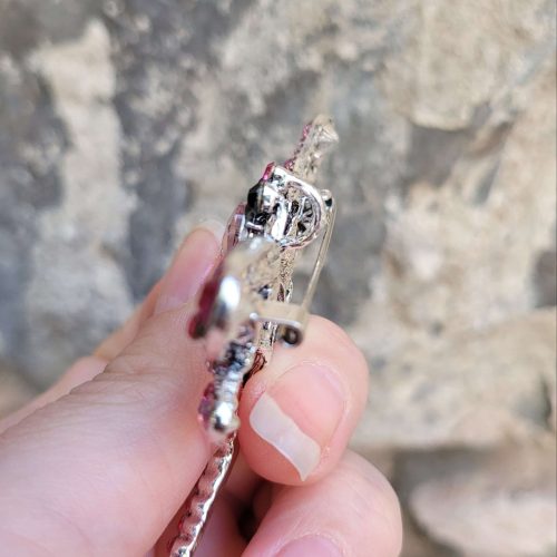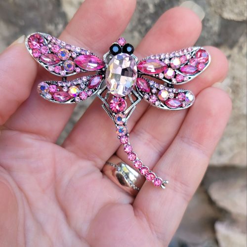 Orta boy toz pembe kristal taşlı yusufçuk broş ve kolye ucu