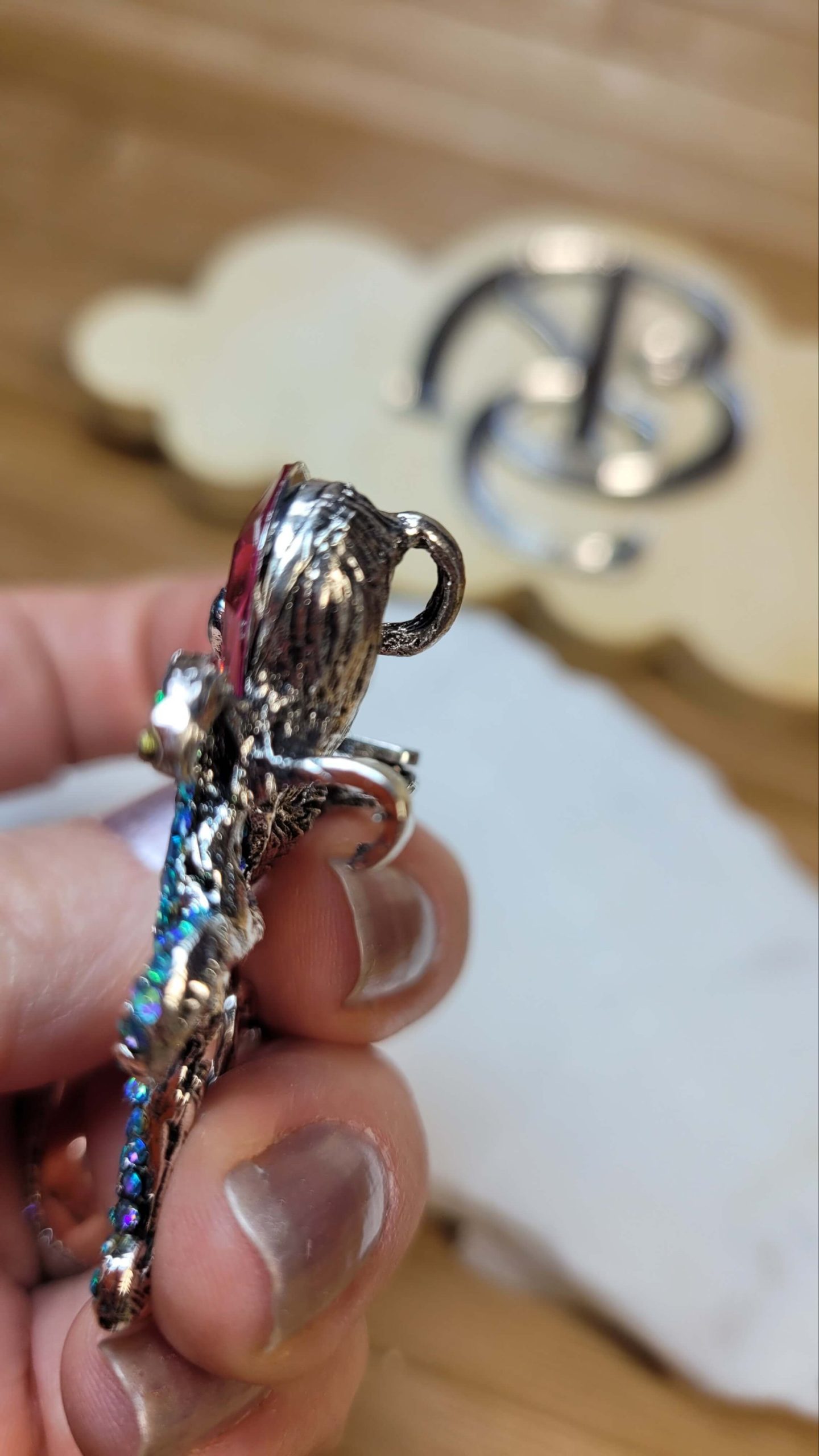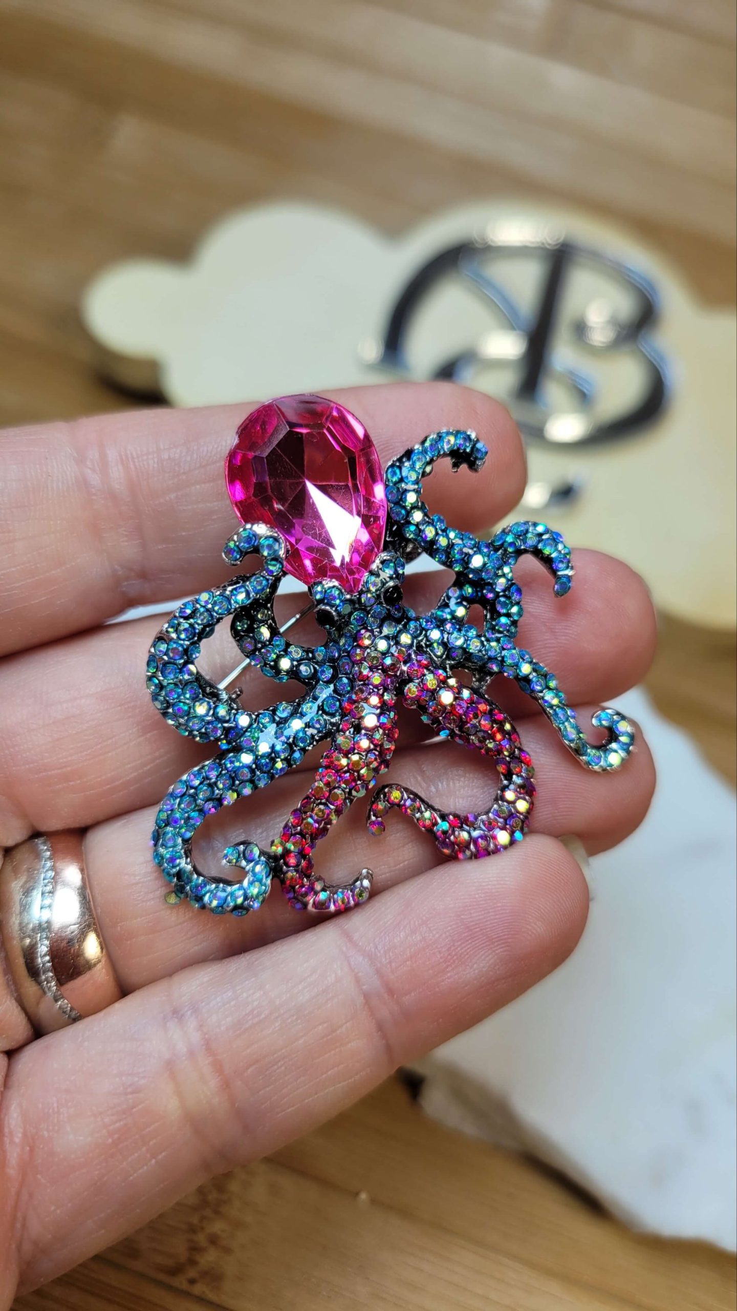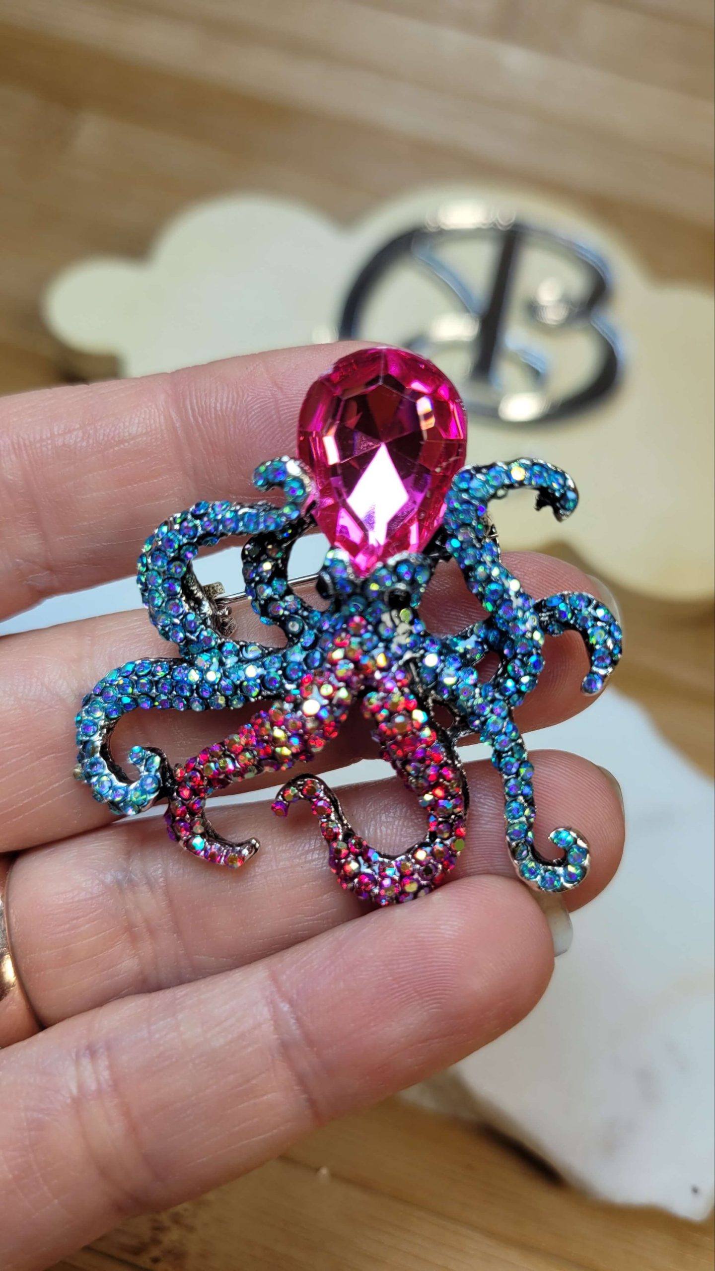 Pembe mavi kristal taşlı ahtapot broş ve kolye ucu