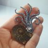 Renkli bilge horoz mineli kristal taşlı broş