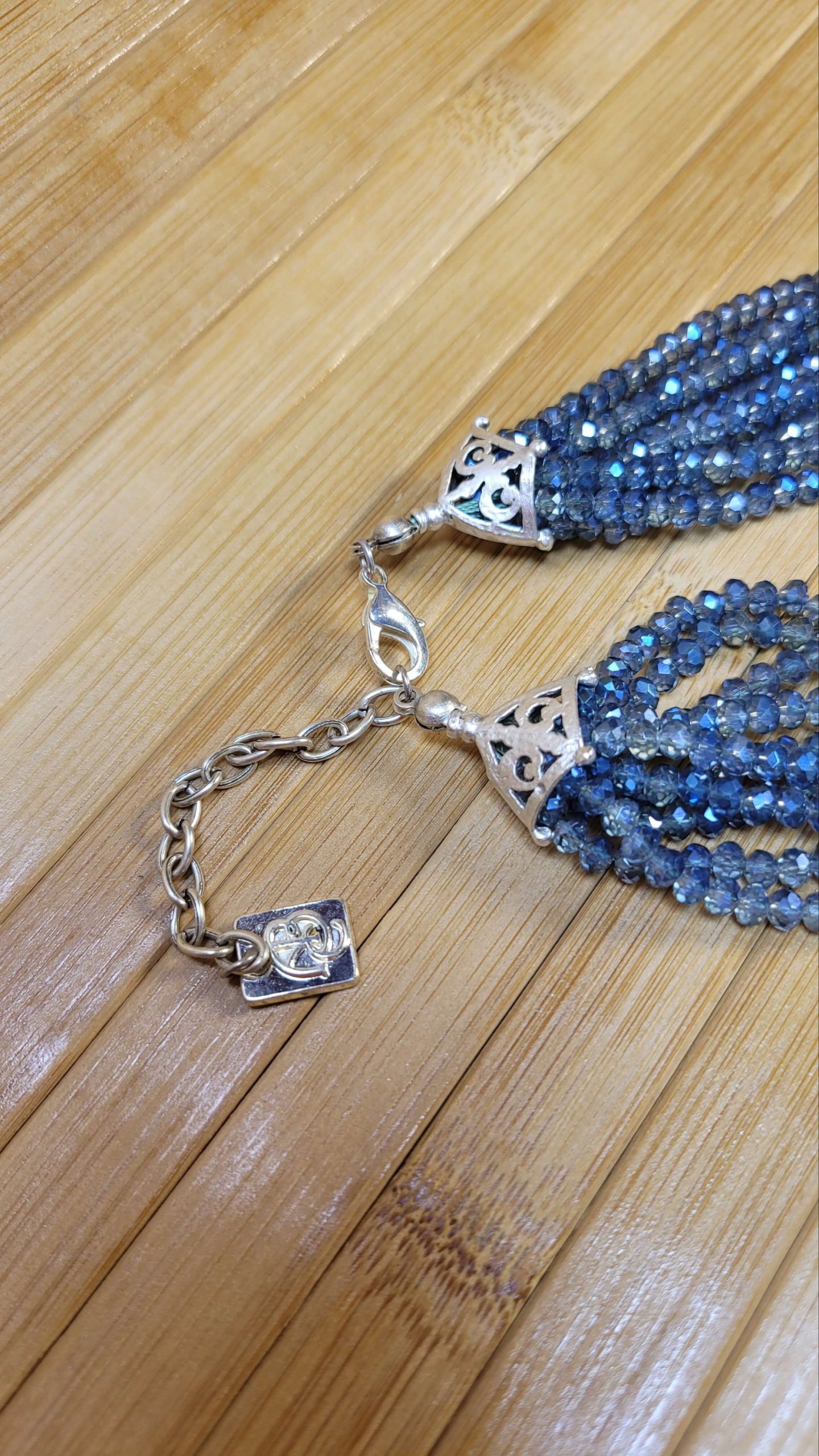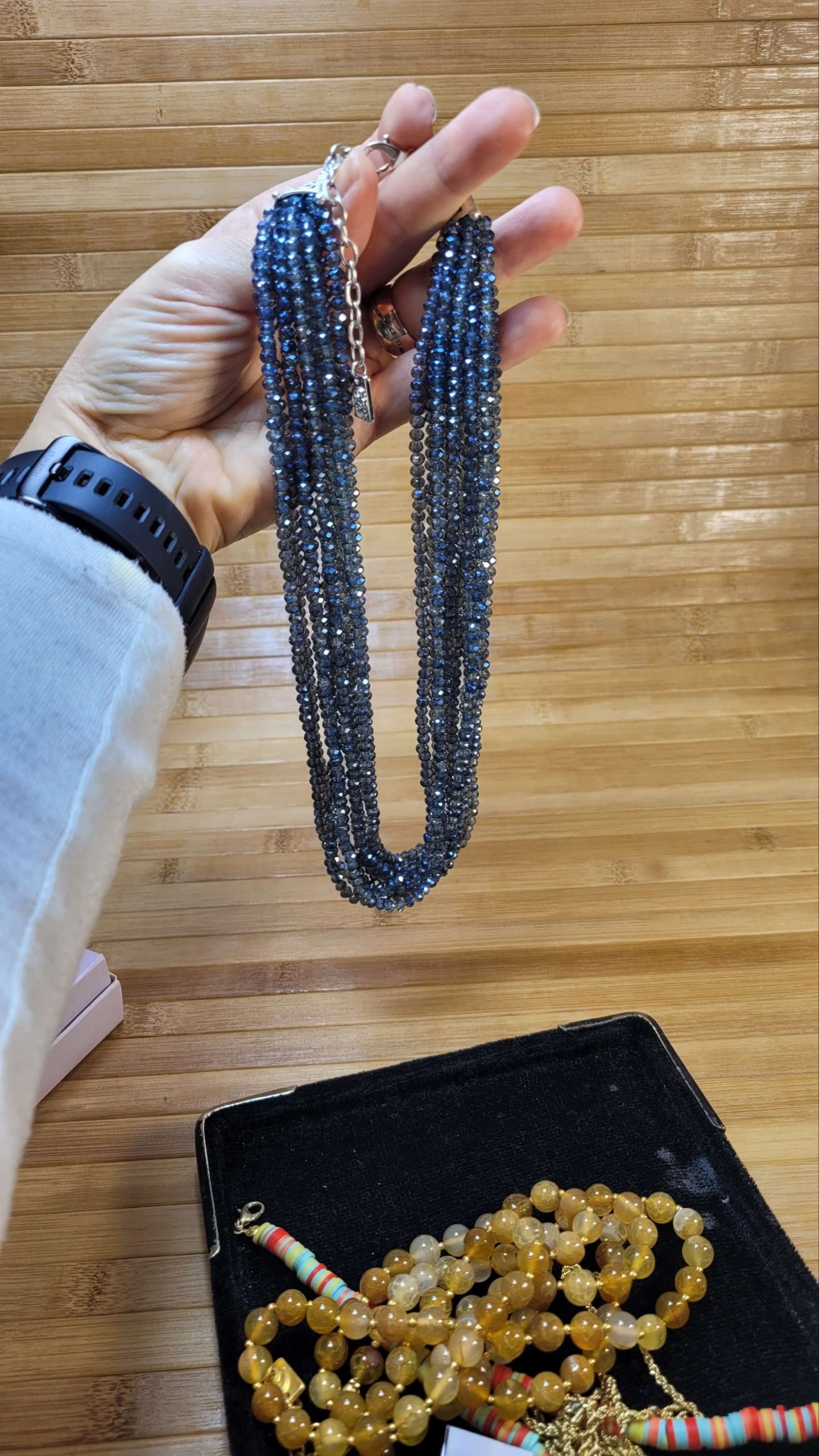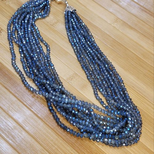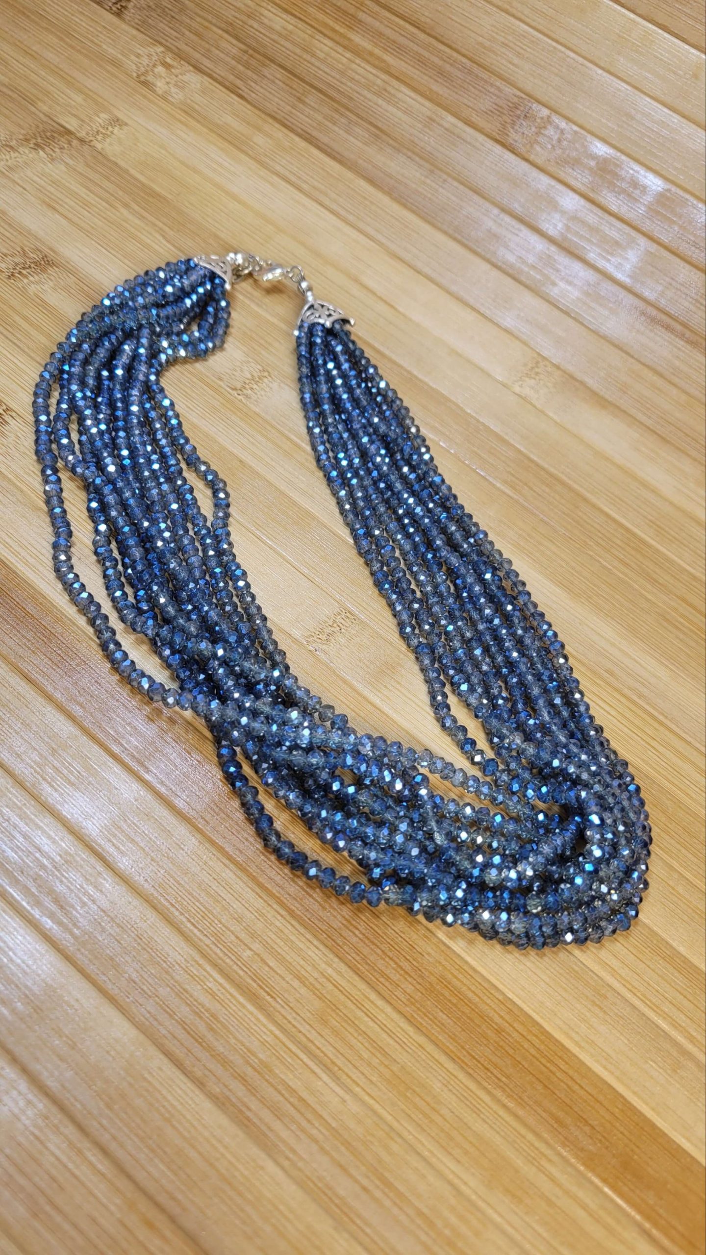 Rüya mavi janjan kristal taşlı 10 dizi ışıl kolye – broş kolyesi (broş dahil değildir)