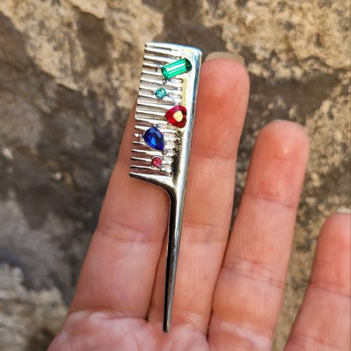 Gümüş rengi Saç tarağı – berber kuaför hediye broş