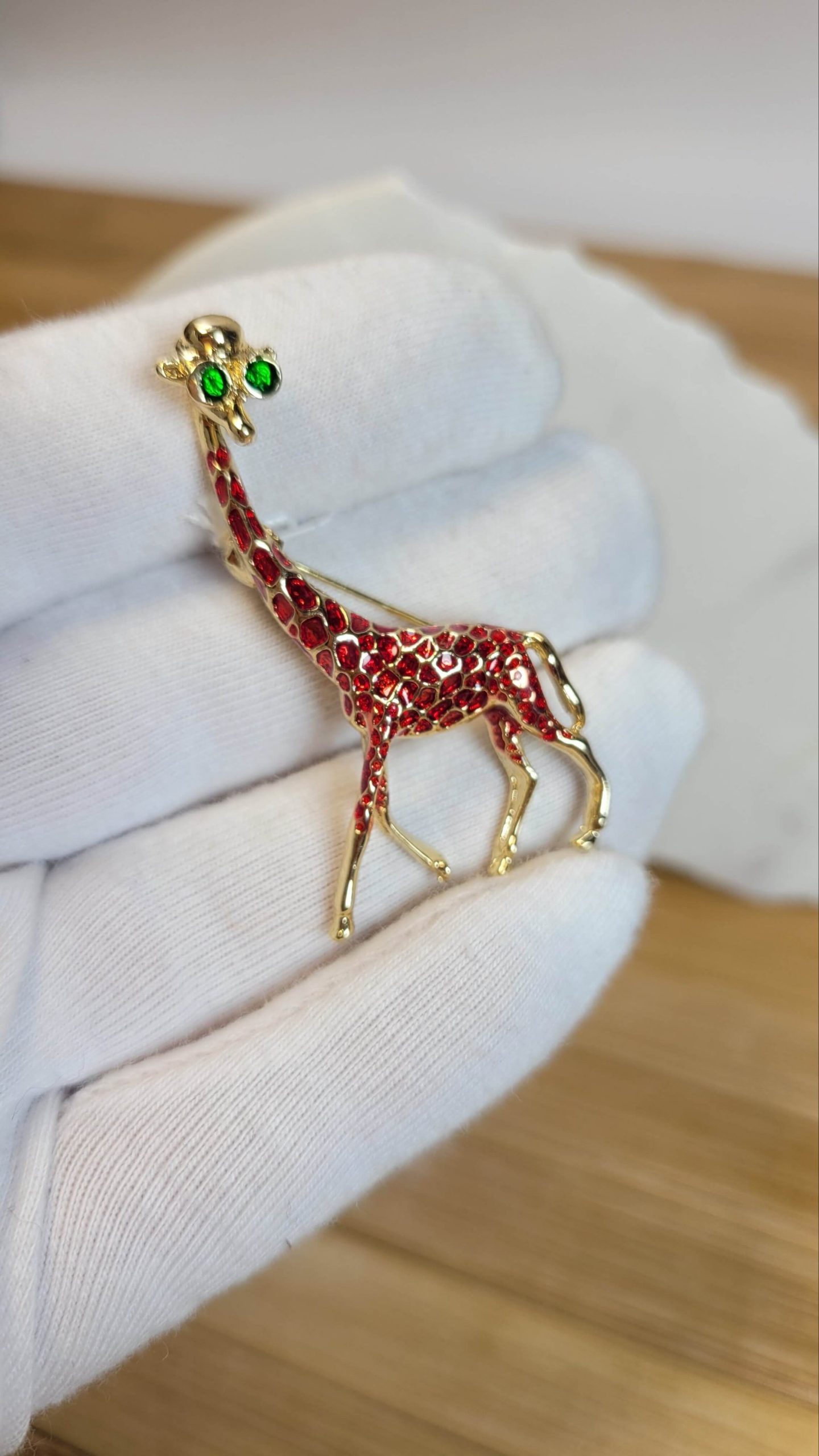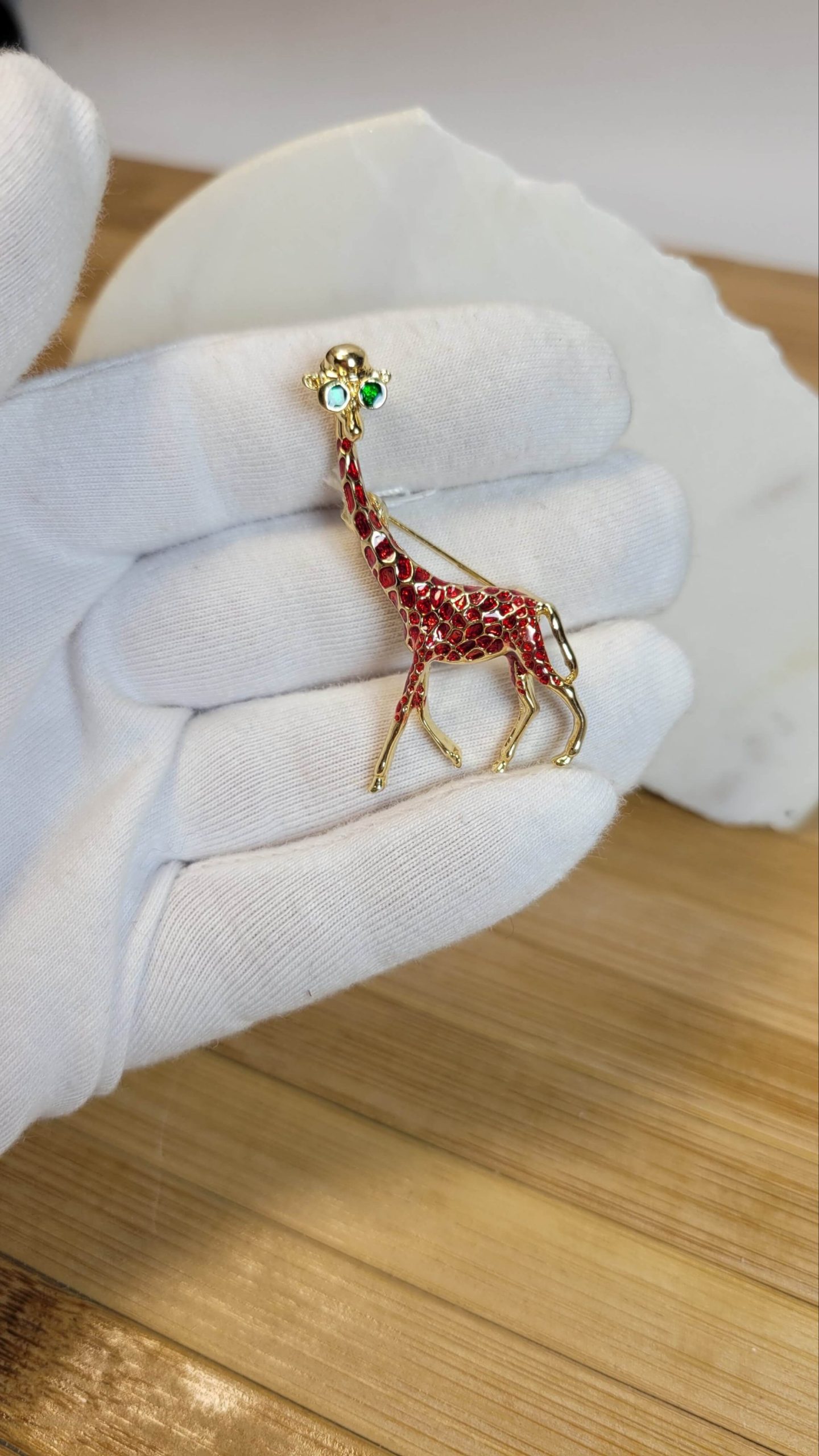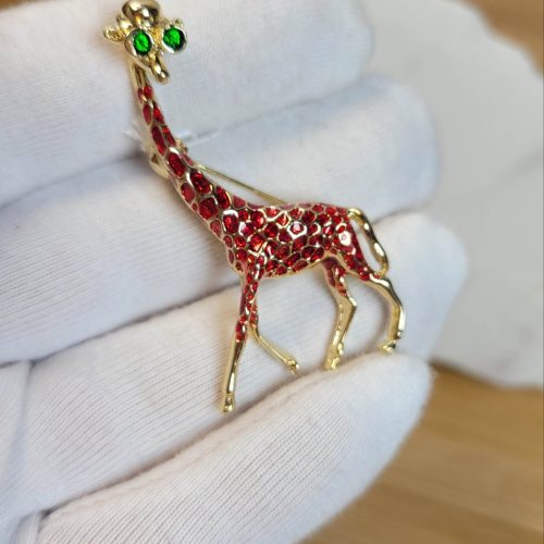 Turuncu benekli yeşil gözlüklü zürafa broş