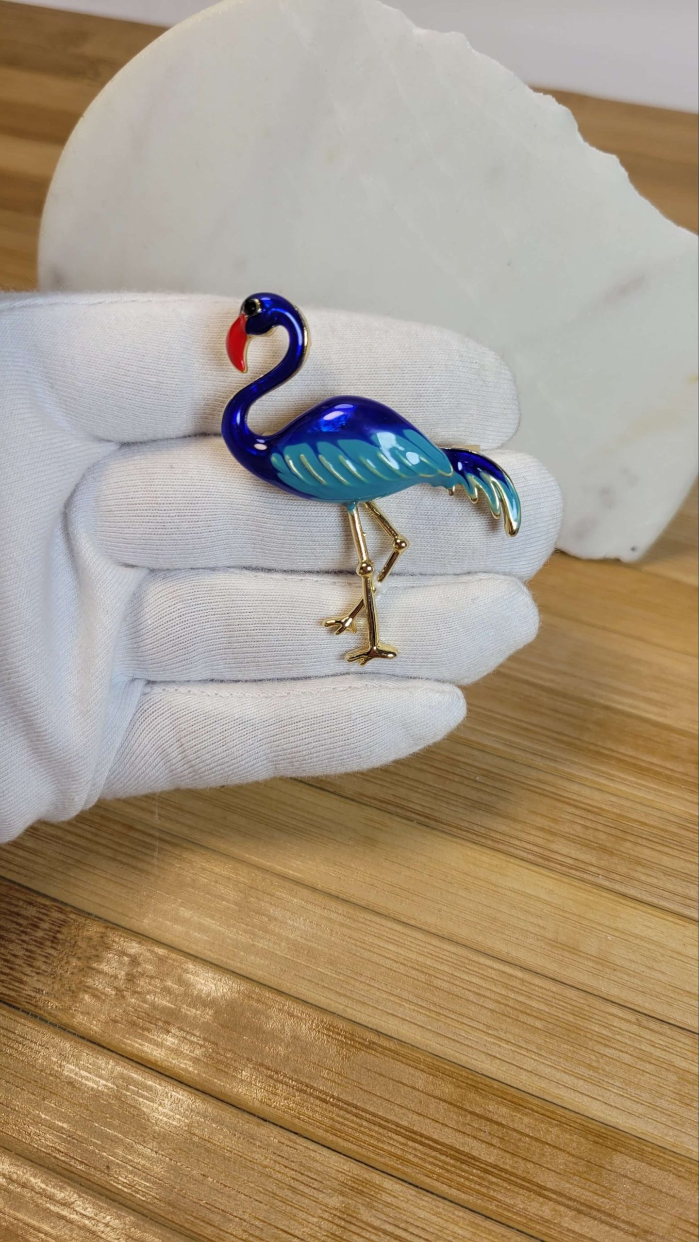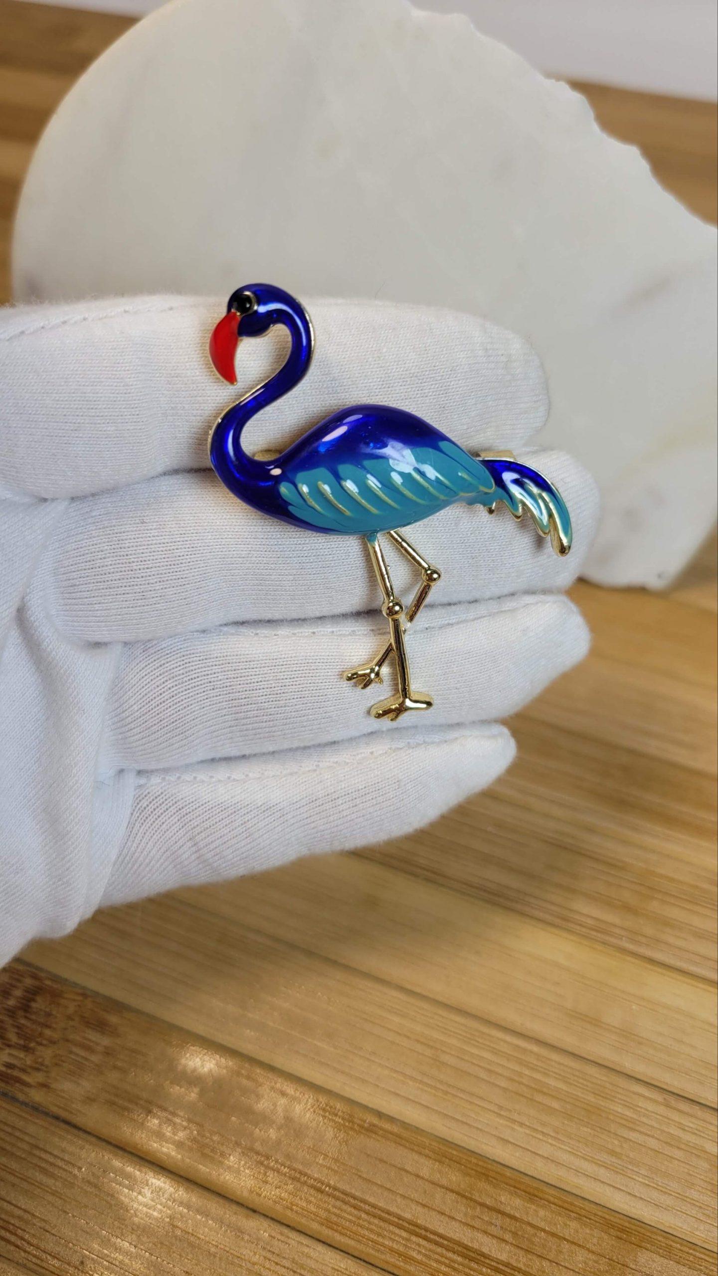Saks mavi mineli flamingo broş