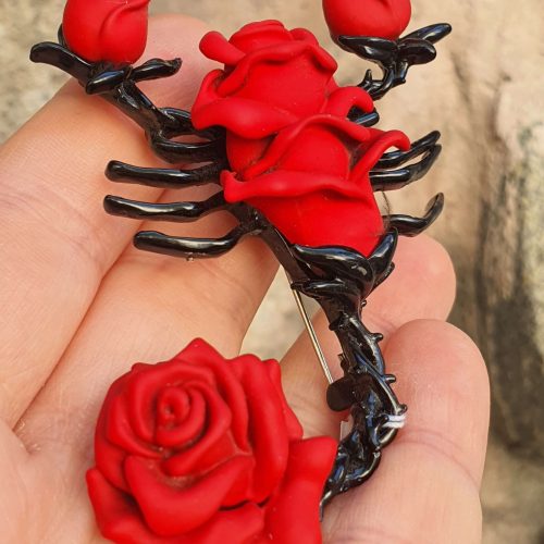 Şehvet kırmızı gül akrep broş ve kolye ucu