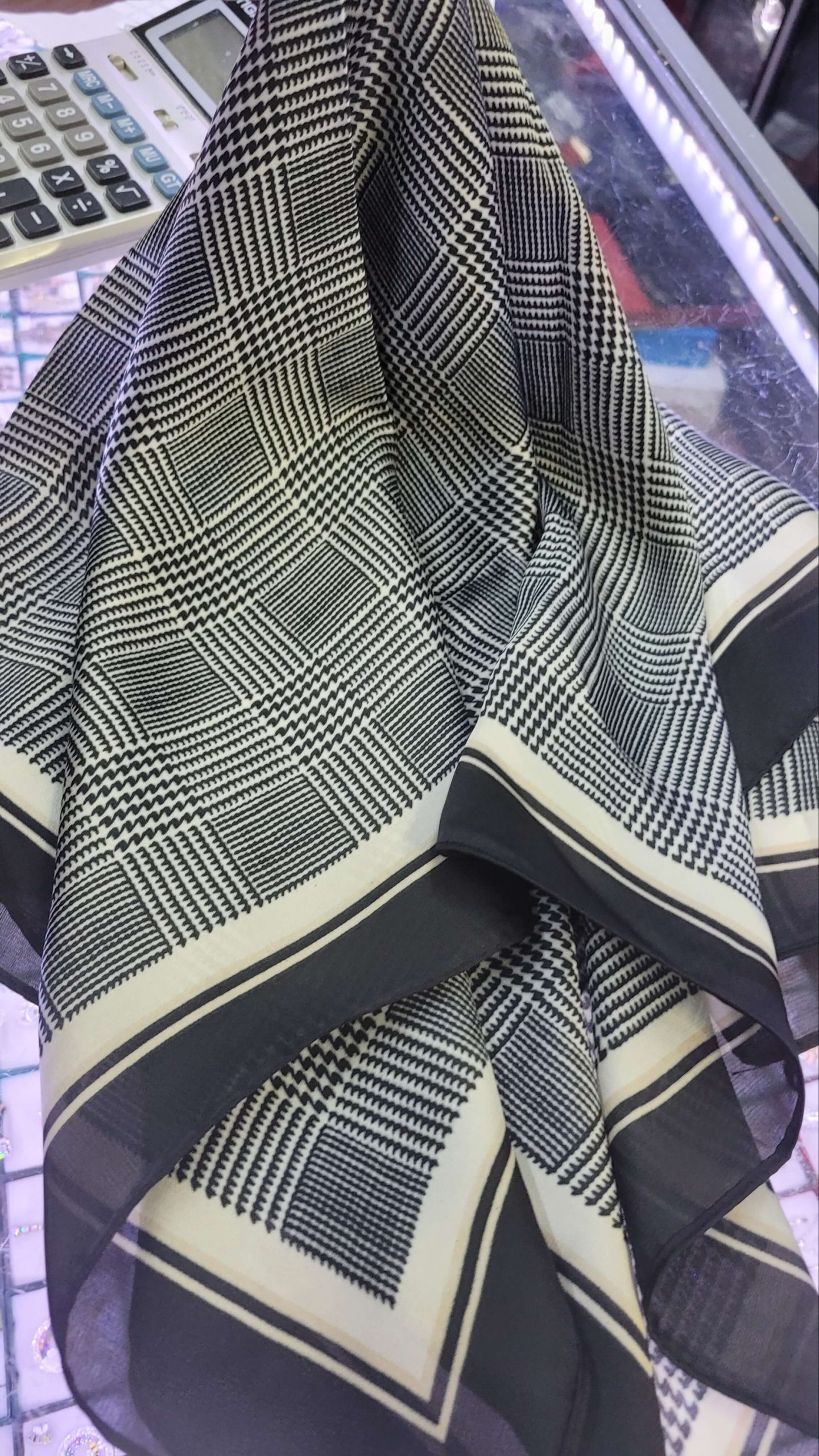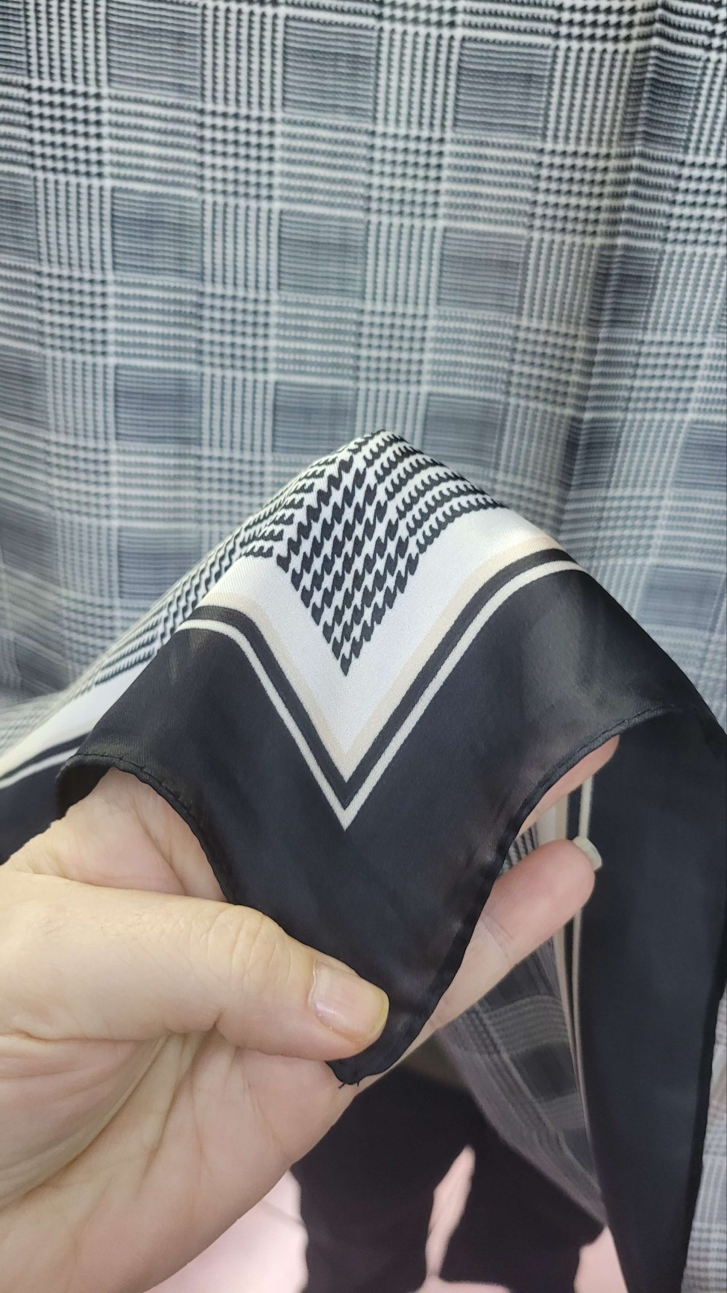 Siyah beyaz kazayağı desen – ipeksi saten şal