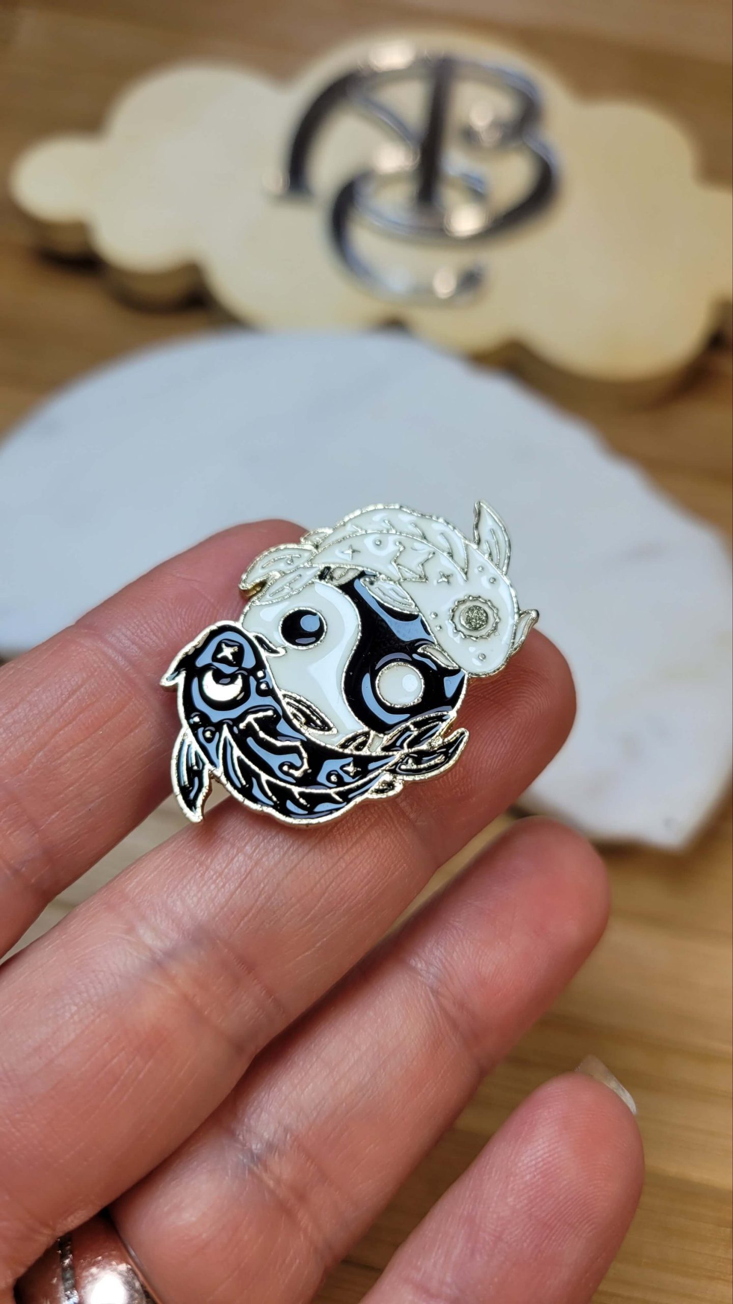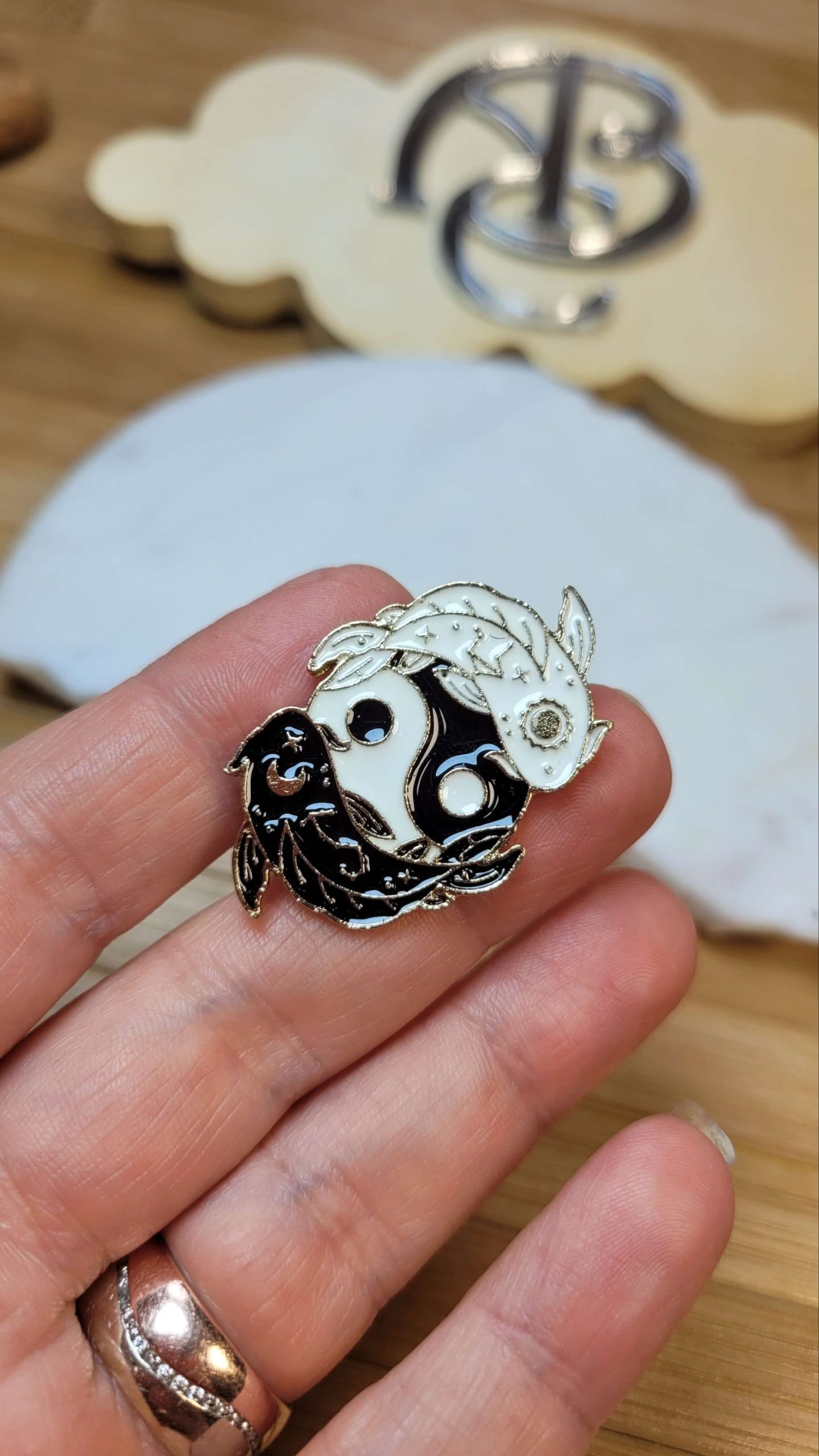 Siyah beyaz koi balığı – her iyilik içinde bir kötülük her kötülük içinde bir iyilik vardır rozet