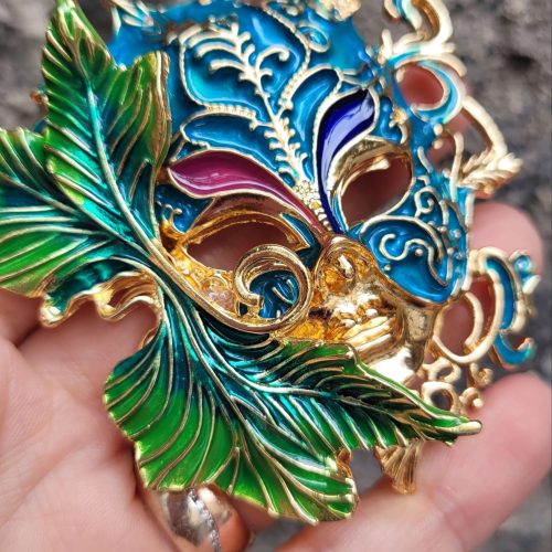 Venedik maskesi yeşil turkuaz mavi broş