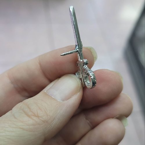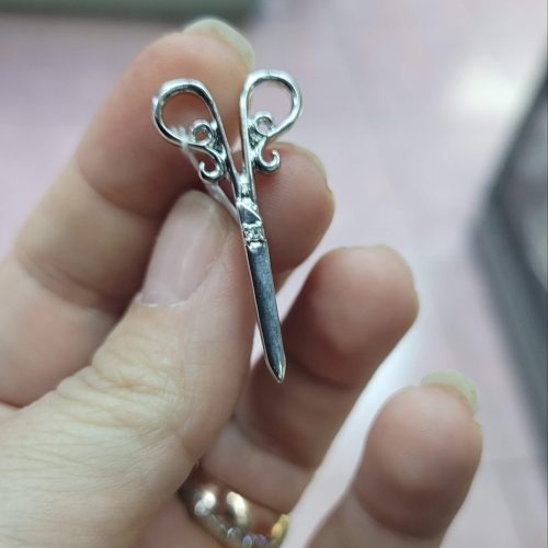 Vintage gümüş rengi makas rozet
