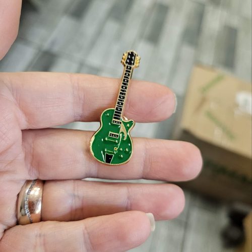 Yeşil elektro gitar rozet – müzisyen müzik öğretmeni hediye